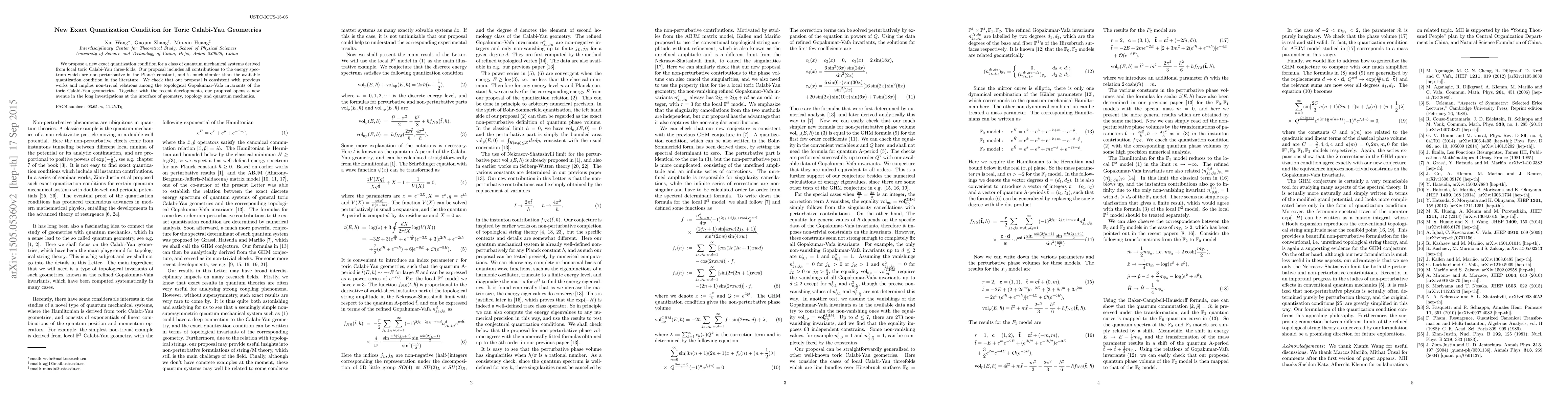 We propose a new exact quantization condition for a class of quantum mechanical systems derived from local toric Calabi-Yau three-folds. Our proposal includes all contributions to the energy spectrum which are non-perturbative in the Planck constant, and is much simpler than the available quantization condition in the literature. We check that our proposal is consistent with previous works and implies non-trivial relations among the topological Gopakumar-Vafa invariants of the toric Calabi-Yau geometries. Together with the recent developments, our proposal opens a new avenue in the long investigations at the interface of geometry, topology and quantum mechanics.