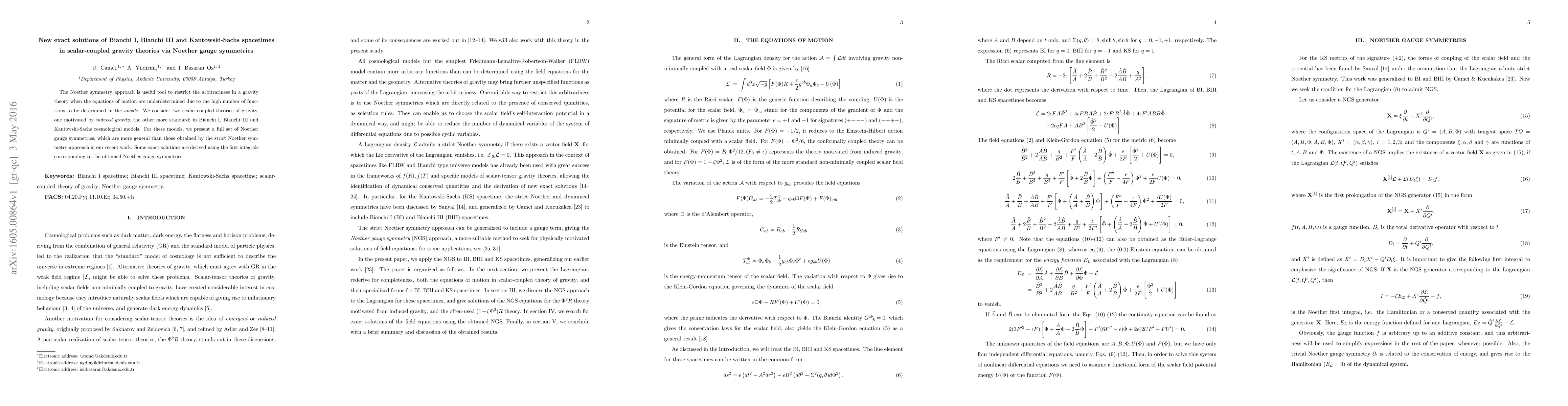 This paper utilizes the Noether symmetry approach to derive exact solutions for Bianchi I, Bianchi III, and Kantowski-Sachs spacetimes in scalar-coupled gravity theories, offering a more general method than previous strict Noether symmetry approaches. Exact solutions are obtained through first integrals corresponding to the identified Noether gauge symmetries.