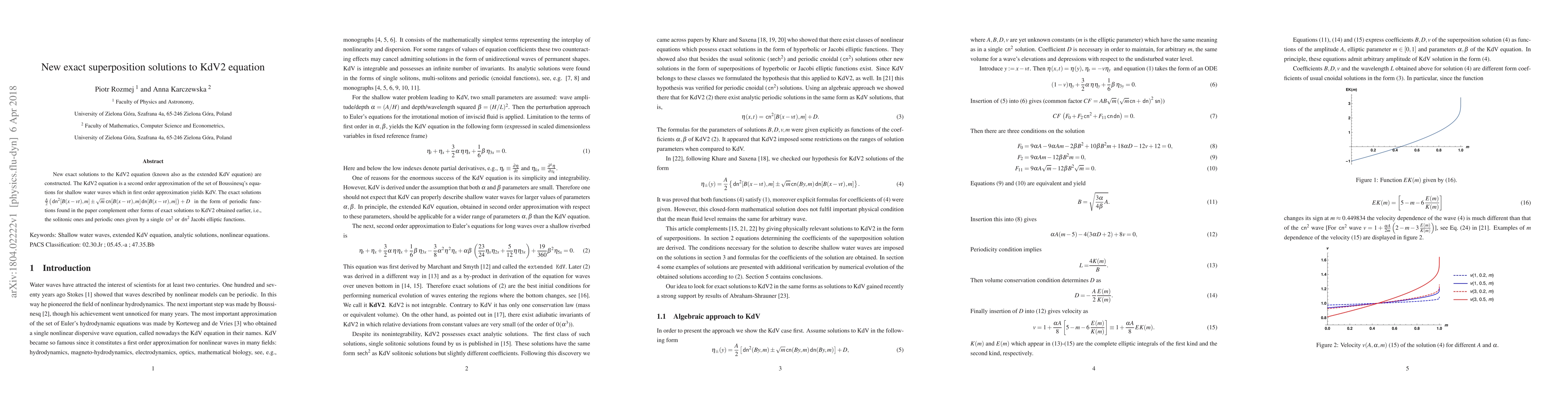 This paper presents new exact periodic solutions to the KdV2 equation, expressed in terms of Jacobi elliptic functions, complementing earlier solitonic and single elliptic periodic solutions. These novel solutions enhance the understanding of the KdV2 equation, which approximates shallow water wave dynamics.