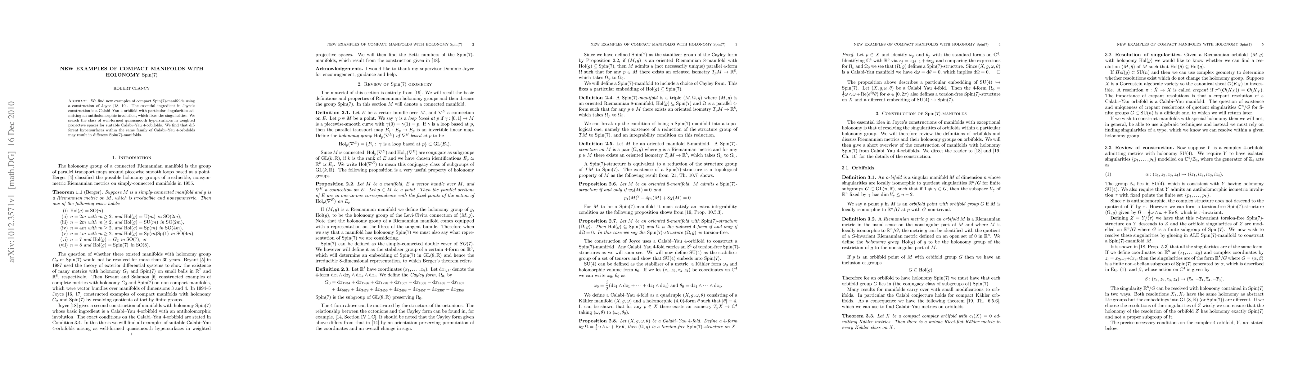 We find new examples of compact Spin(7)-manifolds using a construction of Joyce. The essential ingredient in Joyce's construction is a Calabi-Yau 4-orbifold with particular singularities admitting an antiholomorphic involution, which fixes the singularities. We search the class of well-formed quasismooth hypersurfaces in weighted projective spaces for suitable Calabi-Yau 4-orbifolds. We find that different hypersurfaces within the same family of Calabi-Yau 4-orbifolds may result in different Spin(7)-manifolds.