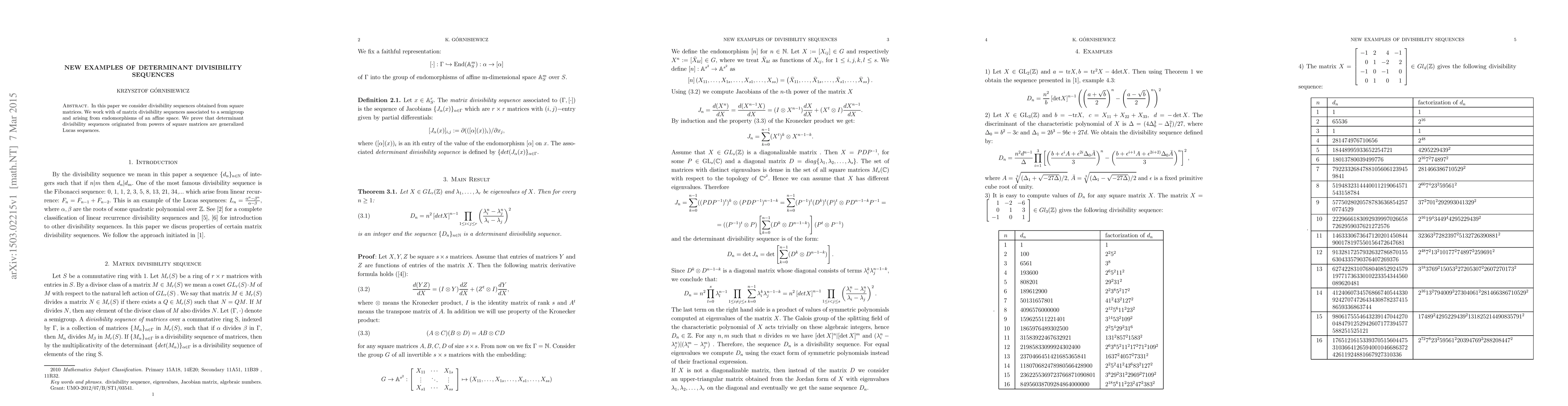 This paper explores divisibility sequences derived from square matrices and shows that determinant sequences originating from matrix powers correspond to generalized Lucas sequences. These sequences arise from endomorphisms in affine spaces and are linked to semigroup structures.