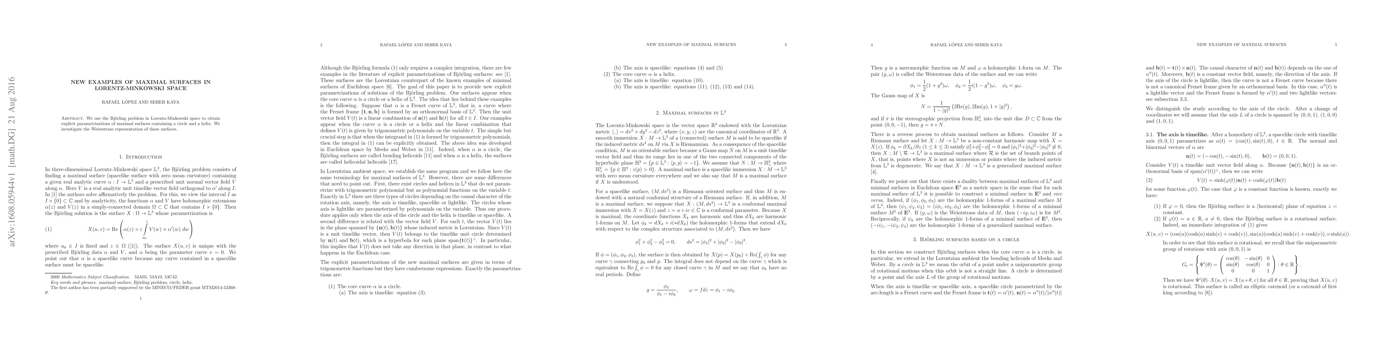 We use the Bj\"orling problem in Lorentz-Minkowski space to obtain explicit parametrizations of maximal surfaces containing a circle and a helix. We investigate the Weierstrass representation of these surfaces.