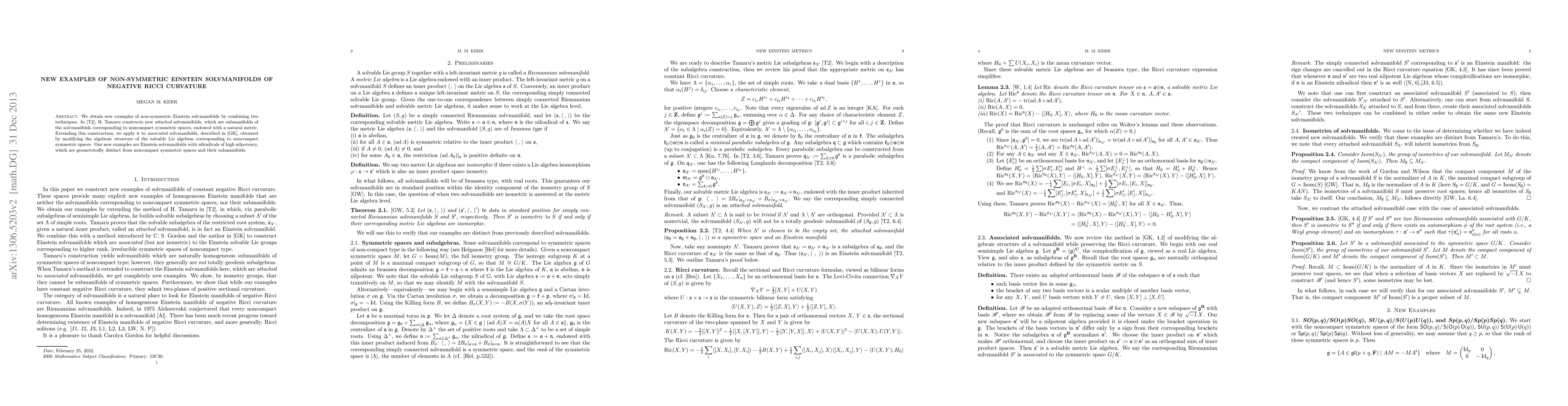 This paper presents new non-symmetric Einstein solvmanifolds with negative Ricci curvature by extending Tamaru's construction of attached solvmanifolds to associated solvmanifolds from GK. These examples feature nilradicals with high nilpotency, differing geometrically from noncompact symmetric spaces.