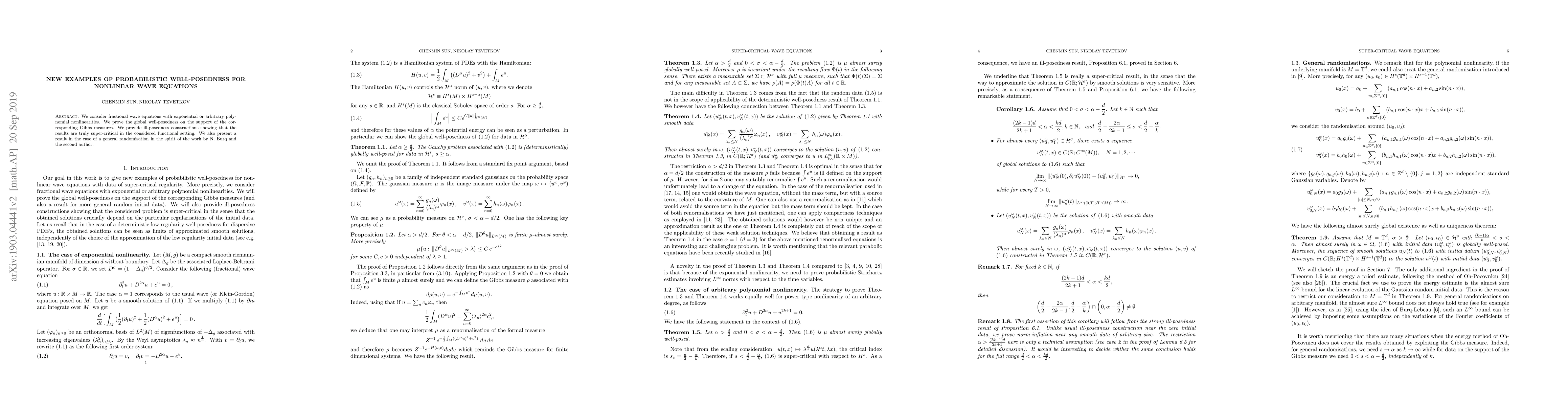 We consider fractional wave equations with exponential or arbitrary polynomial nonlinearities. We prove the global well-posedness on the support of the corresponding Gibbs measures. We provide ill-posedness constructions showing that the results are truly super-critical in the considered functional setting. We also present a result in the case of a general randomisation in the spirit of the work by N. Burq and the second author.