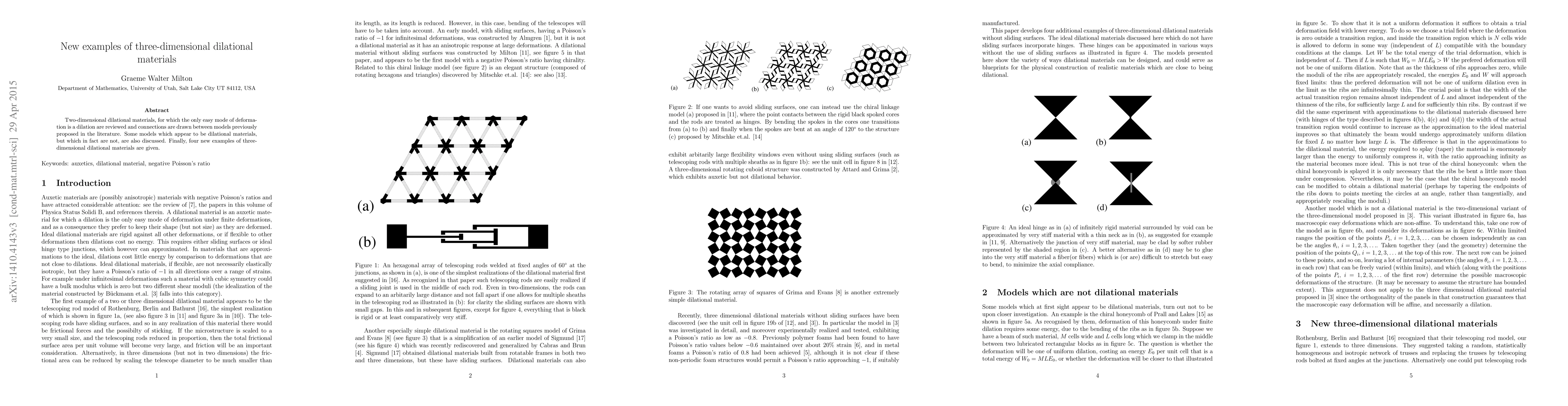 This paper reviews two-dimensional dilational materials and clarifies misconceptions about their deformation modes. It introduces four new examples of three-dimensional dilational materials, expanding the understanding of these unique materials.