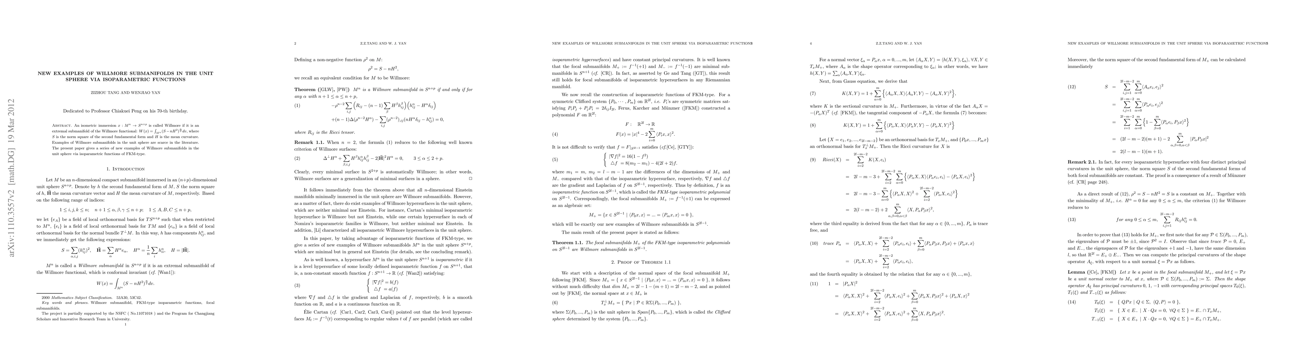 An isometric immersion $x:M^n\rightarrow S^{n+p}$ is called Willmore if it is an extremal submanifold of the Willmore functional: $W(x)=\int_{M^n} (S-nH^2)^{\frac{n}{2}}dv$, where $S$ is the norm square of the second fundamental form and $H$ is the mean curvature. Examples of Willmore submanifolds in the unit sphere are scarce in the literature. The present paper gives a series of new examples of Willmore submanifolds in the unit sphere via isoparametric functions of FKM-type.
