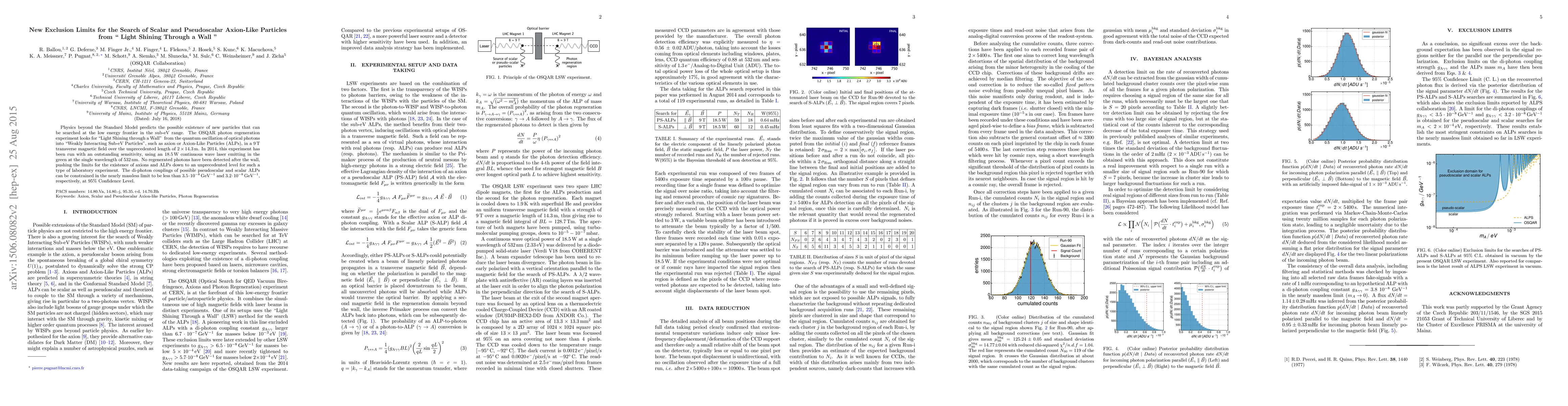 Physics beyond the Standard Model predicts the possible existence of new particles that can be searched at the low energy frontier in the sub-eV range. The OSQAR photon regeneration experiment looks for "Light Shining through a Wall" from the quantum oscillation of optical photons into "Weakly Interacting Sub-eV Particles", such as axion or Axion-Like Particles (ALPs), in a 9 T transverse magnetic field over the unprecedented length of $2 \times 14.3$ m. In 2014, this experiment has been run with an outstanding sensitivity, using an 18.5 W continuous wave laser emitting in the green at the single wavelength of 532 nm. No regenerated photons have been detected after the wall, pushing the limits for the existence of axions and ALPs down to an unprecedented level for such a type of laboratory experiment. The di-photon couplings of possible pseudo-scalar and scalar ALPs can be constrained in the nearly massless limit to be less than $3.5\cdot 10^{-8}$ GeV$^{-1}$ and $3.2\cdot 10^{-8}$ GeV$^{-1}$, respectively, at 95% Confidence Level.