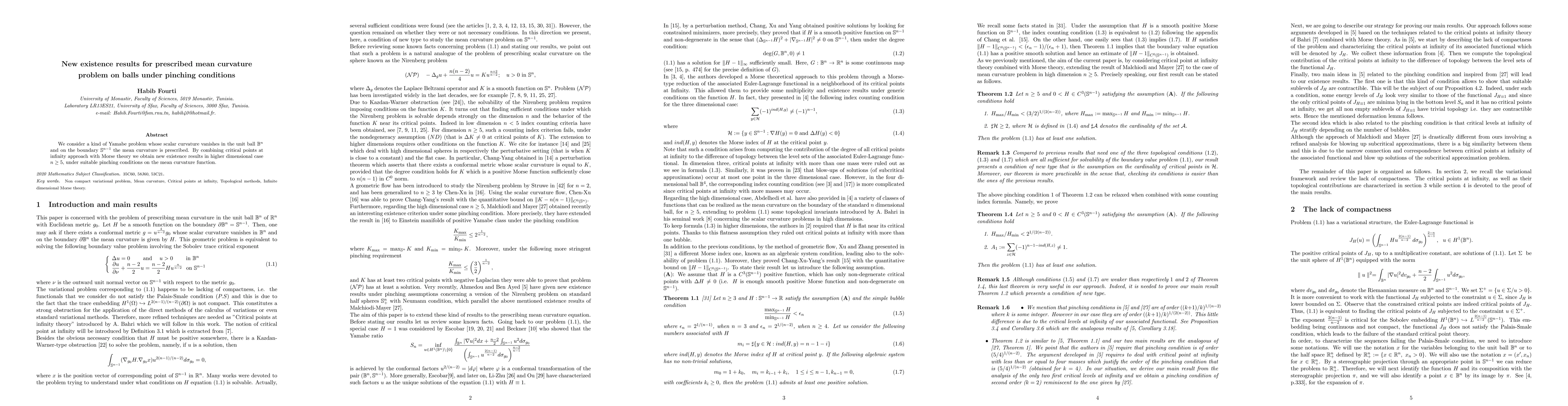 This paper establishes new existence results for the prescribed mean curvature problem in higher dimensions ($n\geq 5$) within unit balls, under specific pinching conditions. It employs a combination of critical points at infinity and Morse theory to achieve these results.