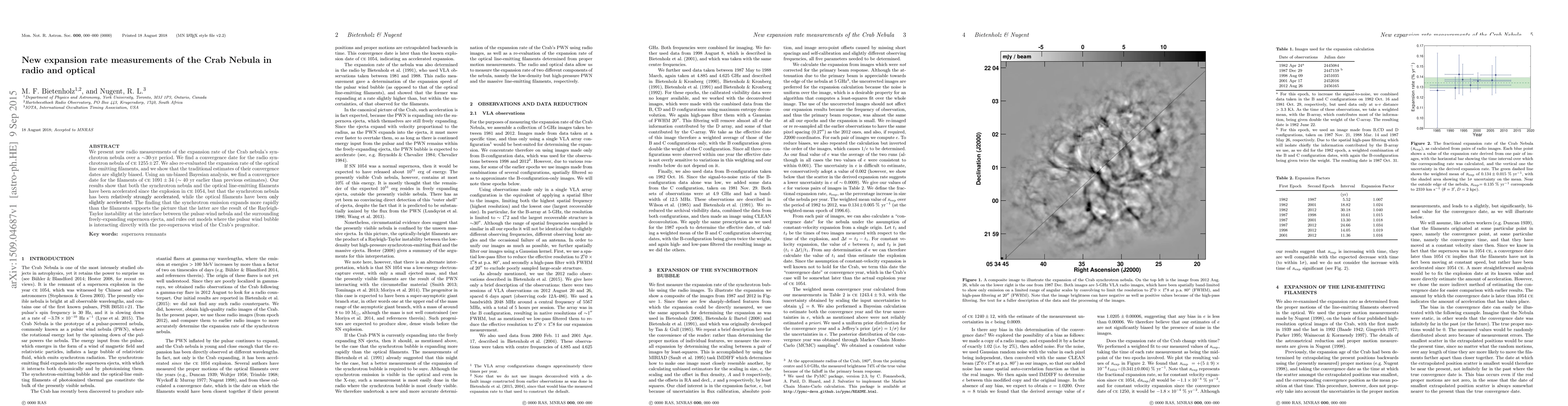 We present new radio measurements of the expansion rate of the Crab nebula's synchrotron nebula over a ~30-yr period. We find a convergence date for the radio synchrotron nebula of CE 1255 +- 27. We also re-evaluated the expansion rate of the optical line emitting filaments, and we show that the traditional estimates of their convergence dates are slightly biased. Using an un-biased Bayesian analysis, we find a convergence date for the filaments of CE 1091 +- 34 (~40 yr earlier than previous estimates). Our results show that both the synchrotron nebula and the optical line-emitting filaments have been accelerated since the explosion in CE 1054, but that the synchrotron nebula has been relatively strongly accelerated, while the optical filaments have been only slightly accelerated. The finding that the synchrotron emission expands more rapidly than the filaments supports the picture that the latter are the result of the Rayleigh-Taylor instability at the interface between the pulsar-wind nebula and the surrounding freely-expanding supernova ejecta, and rules out models where the pulsar wind bubble is interacting directly with the pre-supernova wind of the Crab's progenitor.