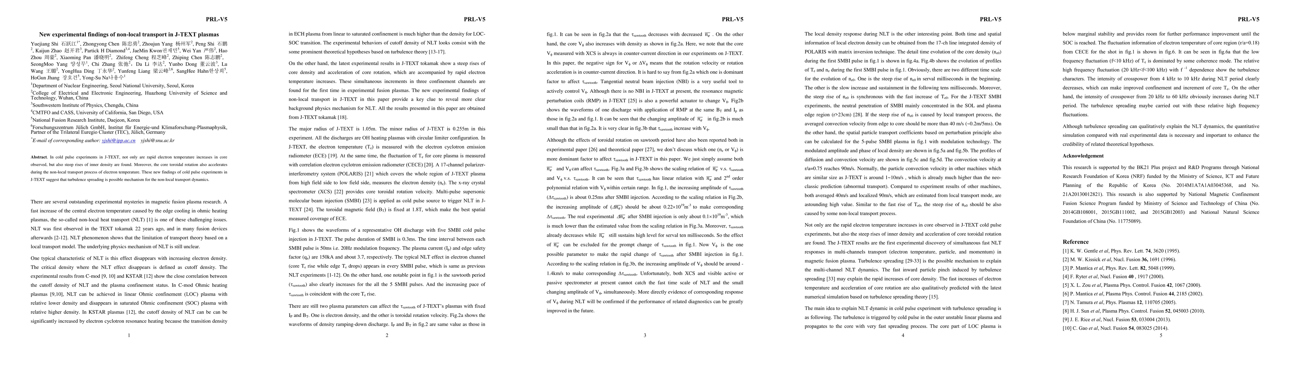 In the cold pulse experiments in J-TEXT, not only are the rapid electron temperature increases in core observed, but also the steep rises of inner density are found. Moreover, the core toroidal rotation is also accelerated during the non-local transport process of electron temperature. These new findings of cold pulse experiments in J-TEXT reveal that turbulence spreading is the possible mechanism for the non-local transport dynamics.