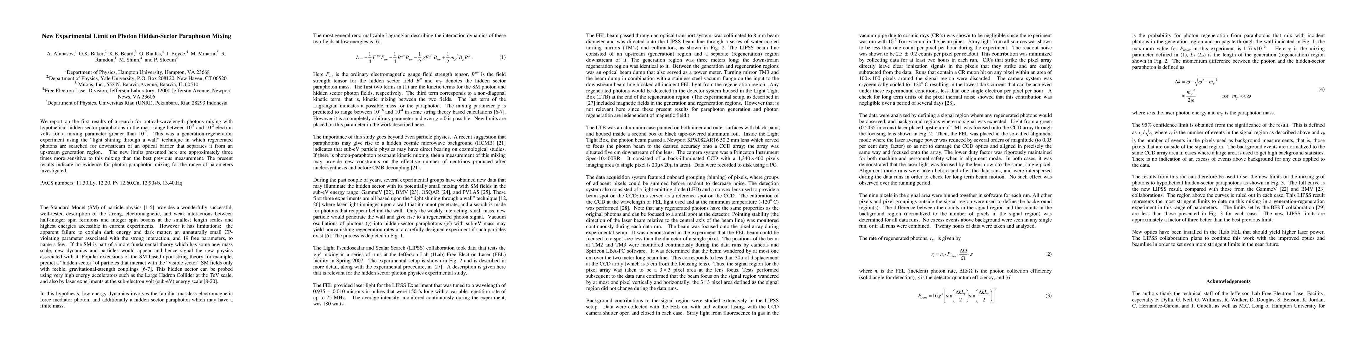 We report on the first results of a search for optical-wavelength photons mixing with hypothetical hidden-sector paraphotons in the mass range between 10^-5 and 10^-2 electron volts for a mixing parameter greater than 10^-7. This was a generation-regeneration experiment using the "light shining through a wall" technique in which regenerated photons are searched for downstream of an optical barrier that separates it from an upstream generation region. The new limits presented here are approximately three times more sensitive to this mixing than the best previous measurement. The present results indicate no evidence for photon-paraphoton mixing for the range of parameters investigated.