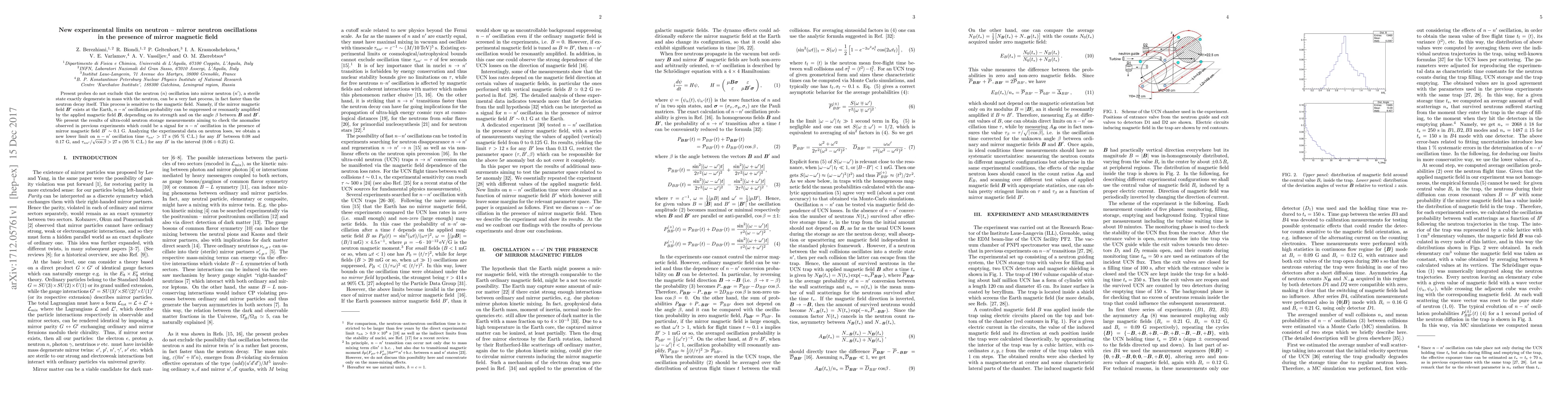 This paper reports new experimental limits on neutron-mirror neutron oscillations influenced by a mirror magnetic field. The study sets a lower limit of 17 seconds for the oscillation time, improving previous constraints and providing stringent conditions under which such oscillations could occur.
