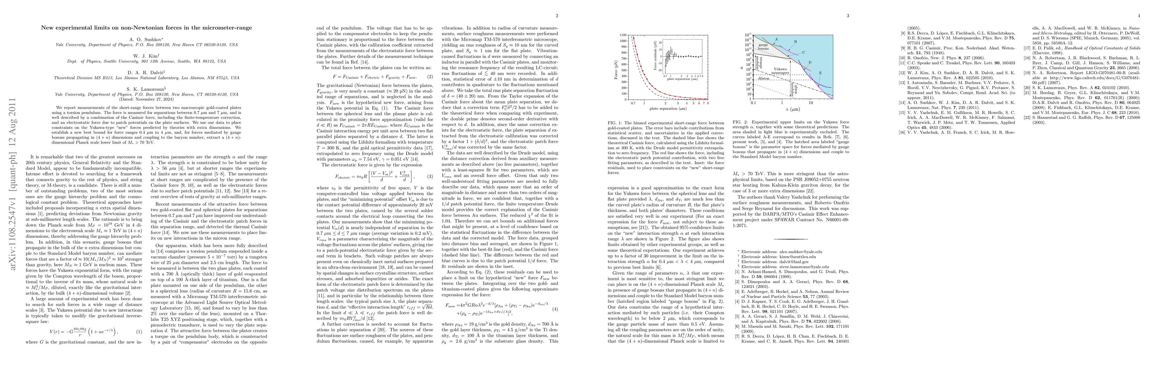 Researchers measure non-Newtonian forces between gold-coated plates at separations from 0.7 to 7 micrometers, constraining new forces predicted by theories with extra dimensions and establishing a new upper limit on force ranges.