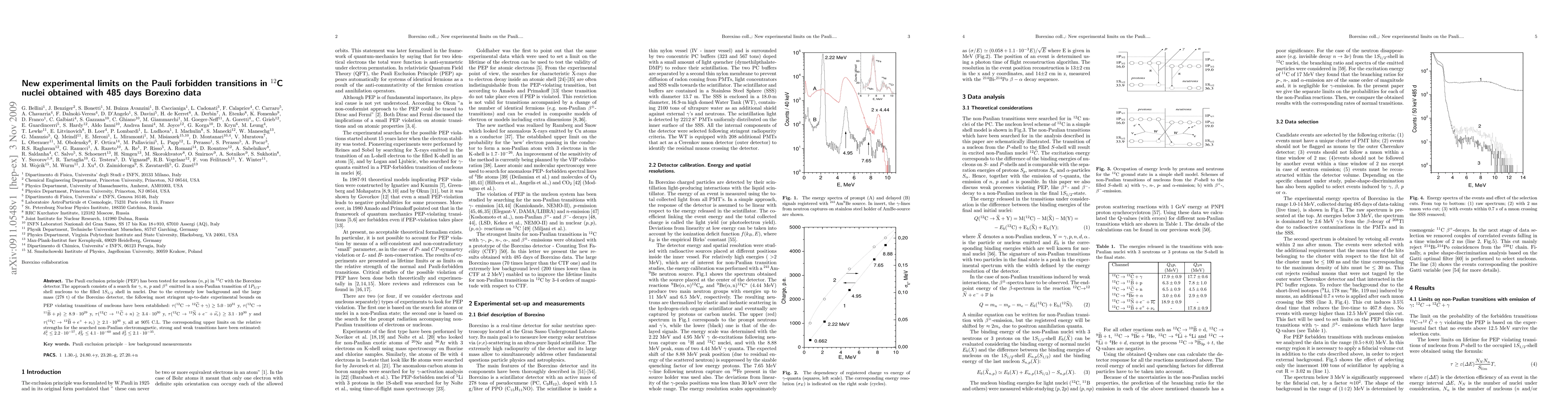 The Pauli exclusion principle (PEP) has been tested for nucleons ($n,p$) in $^{12}C$ with the Borexino detector.The approach consists of a search for $\gamma$, $n$, $p$ and $\beta^\pm$ emitted in a non-Paulian transition of 1$P_{3/2}$- shell nucleons to the filled 1$S_{1/2}$ shell in nuclei. Due to the extremely low background and the large mass (278 t) of the Borexino detector, the following most stringent up-to-date experimental bounds on PEP violating transitions of nucleons have been established: $\tau({^{12}\rm{C}}\to{^{12}\widetilde{\rm{C}}}+\gamma) \geq 5.0\cdot10^{31}$ y, $\tau({^{12}\rm{C}}\to{^{11}\widetilde{\rm{B}}}+ p) \geq 8.9\cdot10^{29}$ y, $\tau({^{12}\rm{C}}\to{^{11}\widetilde{\rm{C}}}+ n) \geq 3.4 \cdot 10^{30}$ y, $\tau({^{12}\rm{C}}\to{^{12}\widetilde{\rm{N}}}+ e^- + \widetilde{\nu_e}) \geq 3.1\cdot 10^{30}$ y and $\tau({^{12}\rm{C}}\to{^{12}\widetilde{\rm{B}}}+ e^+ + \nu_e) \geq 2.1 \cdot 10^{30}$ y, all at 90% C.L. The corresponding upper limits on the relative strengths for the searched non-Paulian electromagnetic, strong and weak transitions have been estimated: $\delta^2_{\gamma} \leq 2.2\cdot10^{-57}$, $\delta^2_{N} \leq 4.1\cdot10^{-60}$ and $\delta^2_{\beta} \leq 2.1\cdot10^{-35}$.