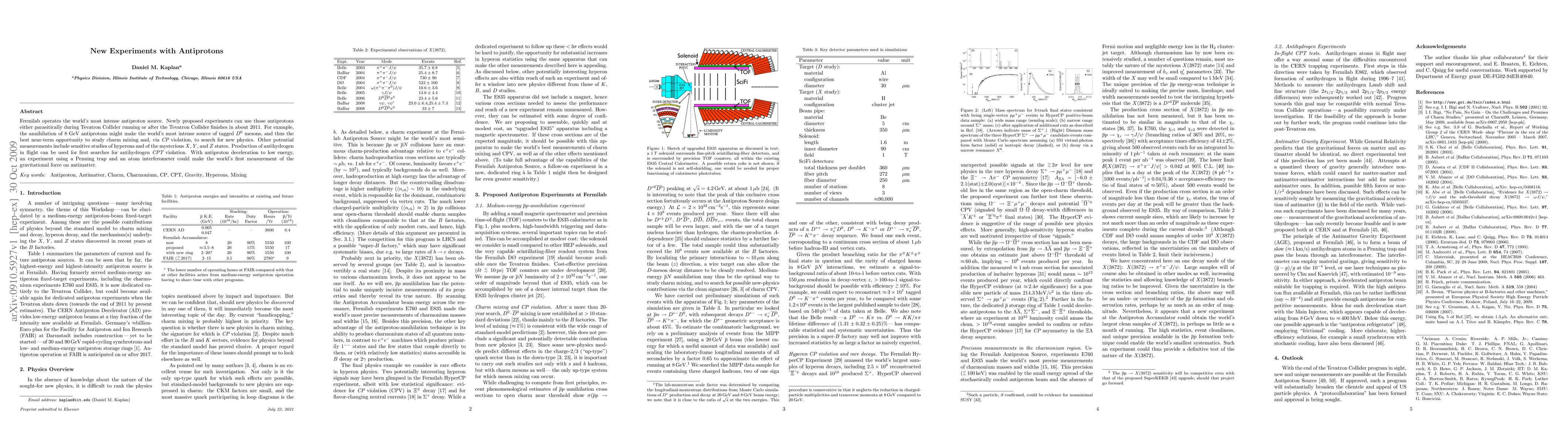 This paper discusses new experiments utilizing Fermilab's intense antiproton source, including potential studies on charm mixing, hyperons, and the X, Y, and Z states, as well as searches for antihydrogen CPT violation and gravitational force on antimatter. These experiments aim to explore new physics via CP violation and antiproton annihilation.