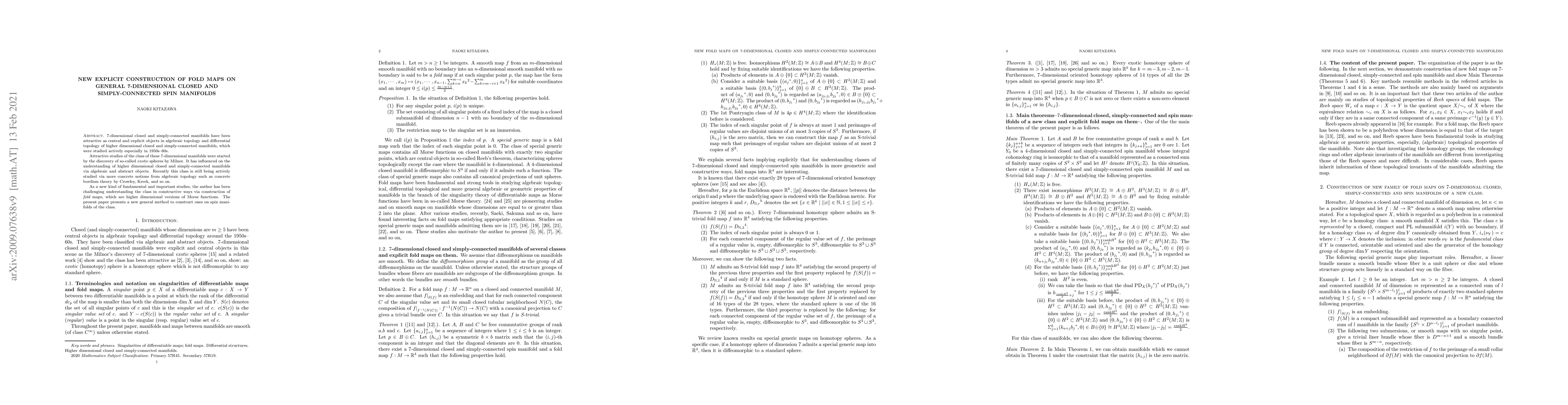 This paper introduces a novel explicit construction method for fold maps on 7-dimensional closed and simply-connected spin manifolds, contributing to the constructive understanding of these manifolds in algebraic and differential topology. The method aims to provide a more tangible approach to studying these manifolds, which have historically been explored through abstract algebraic concepts.