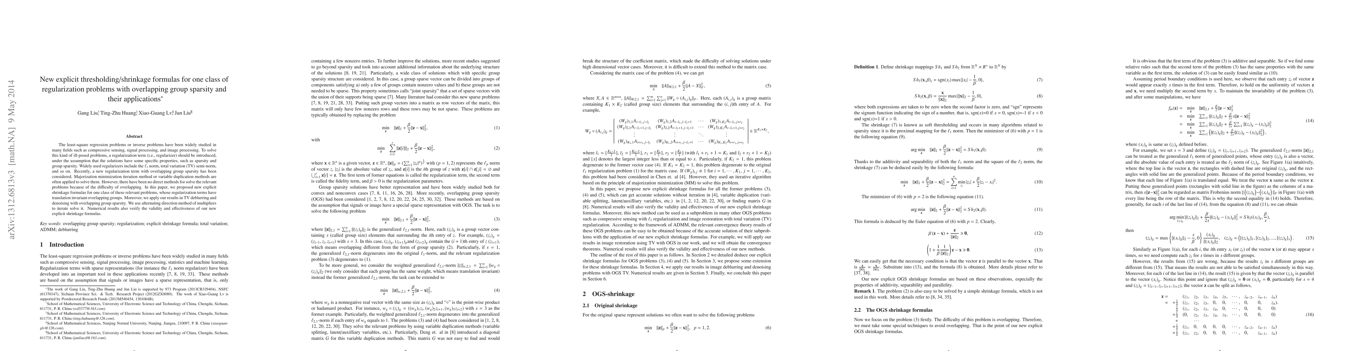 This paper proposes new explicit shrinkage formulas for solving regularization problems with overlapping group sparsity, particularly in least-square regression and inverse problems. The authors apply their method to TV deblurring and denoising, demonstrating its effectiveness through numerical results.