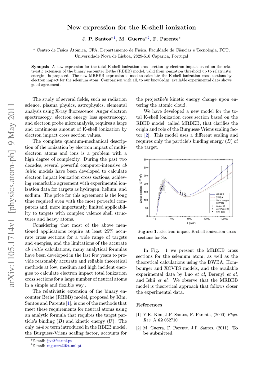 This paper proposes a new relativistic expression, MRBEB, for the K-shell ionization cross section by electron impact, valid from threshold to relativistic energies. The model is applied to selenium, showing good agreement with existing experimental data.