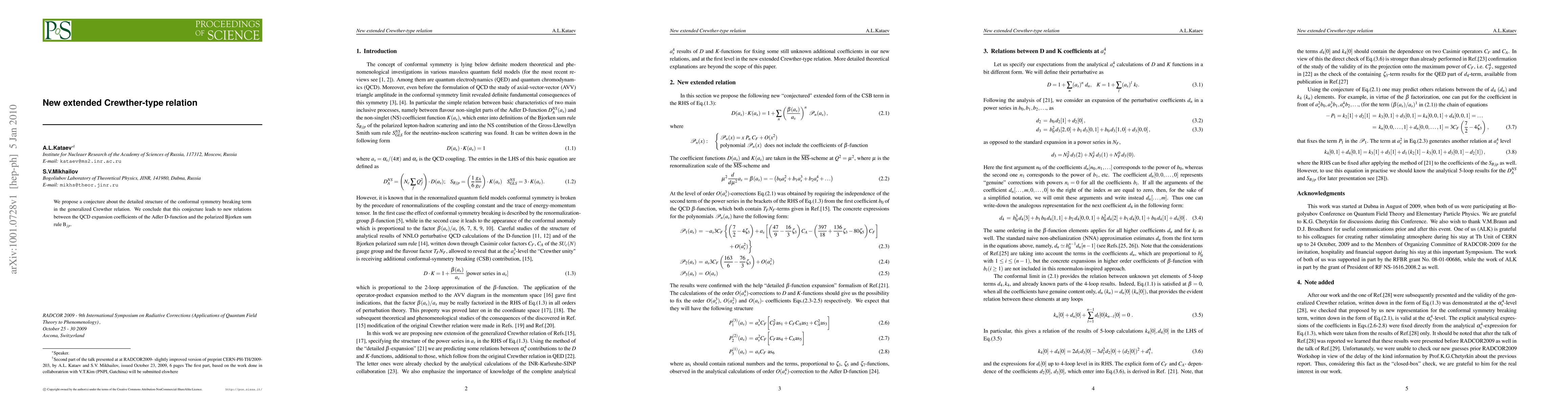 This paper proposes a conjecture regarding the structure of the conformal symmetry breaking term in the generalized Crewther relation, suggesting it leads to new relations between QCD expansion coefficients of the Adler D-function and the polarized Bjorken sum rule B$_{jp}$.