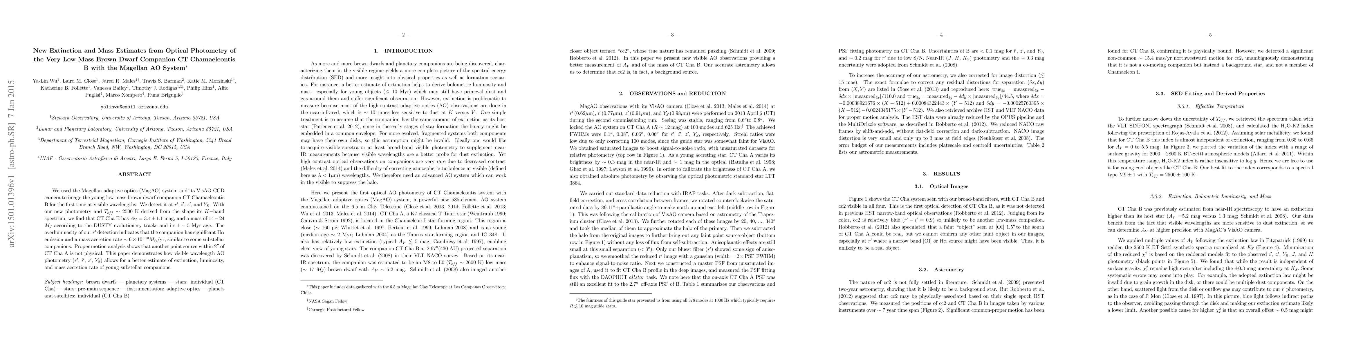 We used the Magellan adaptive optics (MagAO) system and its VisAO CCD camera to image the young low mass brown dwarf companion CT Chamaeleontis B for the first time at visible wavelengths. We detect it at r', i', z', and Ys. With our new photometry and Teff~2500 K derived from the shape its K-band spectrum, we find that CT Cha B has Av = 3.4+/-1.1 mag, and a mass of 14-24 Mj according to the DUSTY evolutionary tracks and its 1-5 Myr age. The overluminosity of our r' detection indicates that the companion has significant Halpha emission and a mass accretion rate ~6*10^-10 Msun/yr, similar to some substellar companions. Proper motion analysis shows that another point source within 2" of CT Cha A is not physical. This paper demonstrates how visible wavelength AO photometry (r', i', z', Ys) allows for a better estimate of extinction, luminosity, and mass accretion rate of young substellar companions.