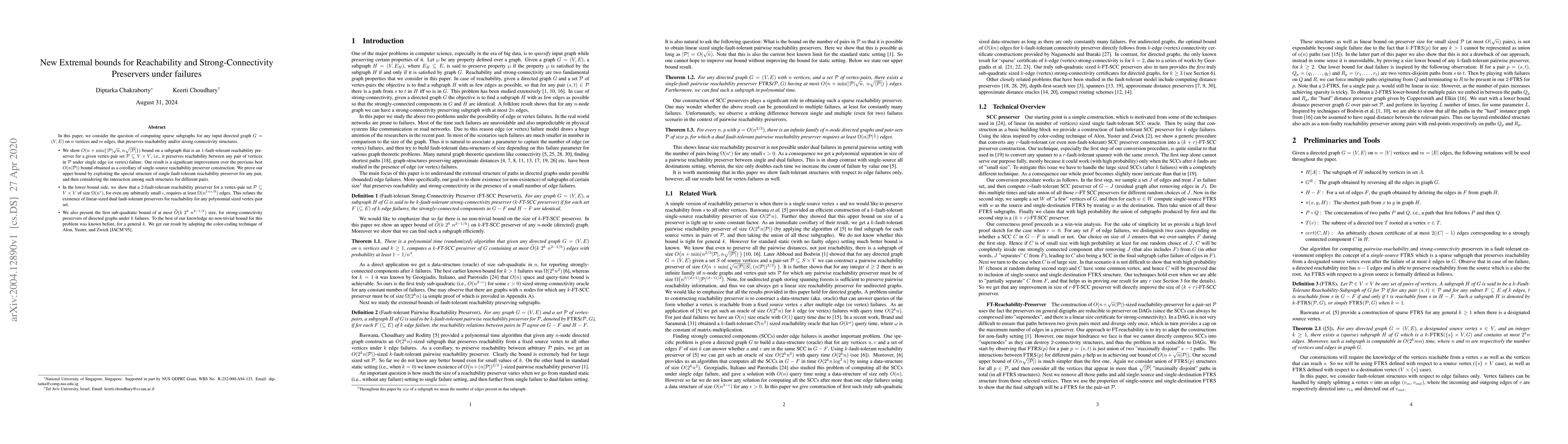 This paper presents new extremal bounds for computing sparse subgraphs that preserve reachability and strong connectivity in directed graphs under failures. It provides an improved upper bound of $O(n+\min\{|{\cal P}|\sqrt{n},n\sqrt{|{\cal P}|}\})$ for 1-fault-tolerant reachability preservers and a lower bound of $\Omega(n^{1+\epsilon/8})$ for 2-fault-tolerant ones, refuting linear-sized dual fault-tolerant preservers. Additionally, it introduces the first sub-quadratic bound of $\tilde{O}(k 2^k n^{2-1/k})$ for strong-connectivity preservers under $k$ failures.