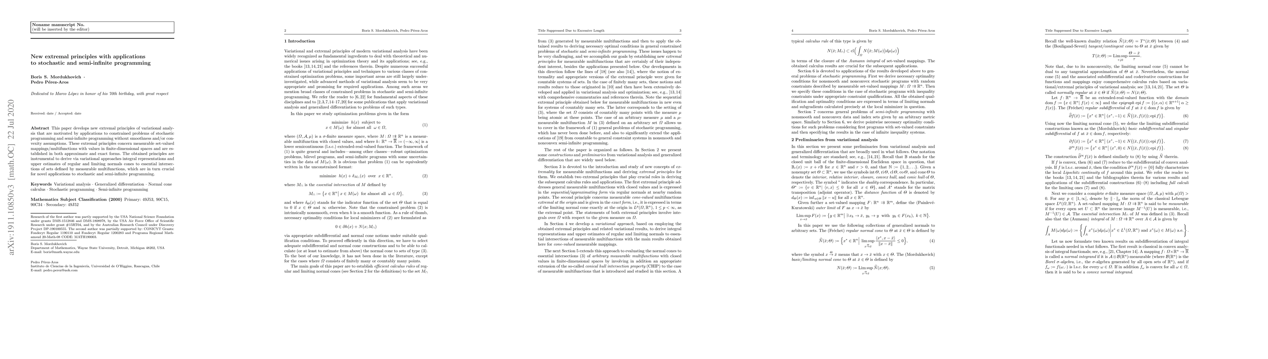 This paper introduces new extremal principles for variational analysis applicable to stochastic and semi-infinite programming, without requiring smoothness or convexity. The principles aid in deriving integral representations and upper estimates for normal cones to intersections of sets defined by measurable multifunctions, enhancing solutions to complex programming problems.