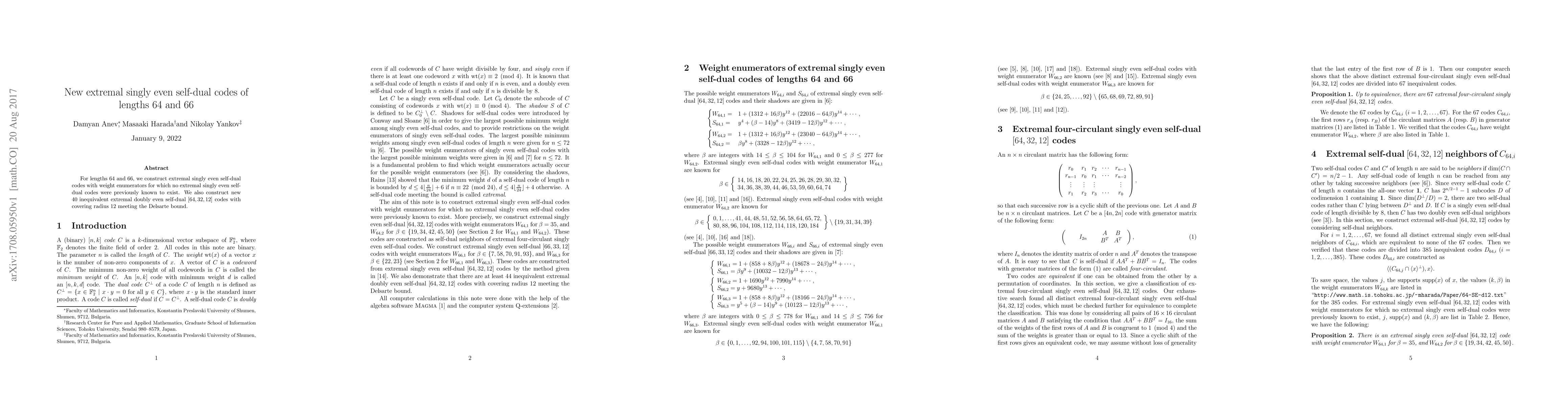 This paper constructs new extremal singly even self-dual codes for lengths 64 and 66, where previously no such codes were known. Additionally, it presents 40 inequivalent extremal doubly even self-dual $[64,32,12]$ codes meeting the Delsarte bound.