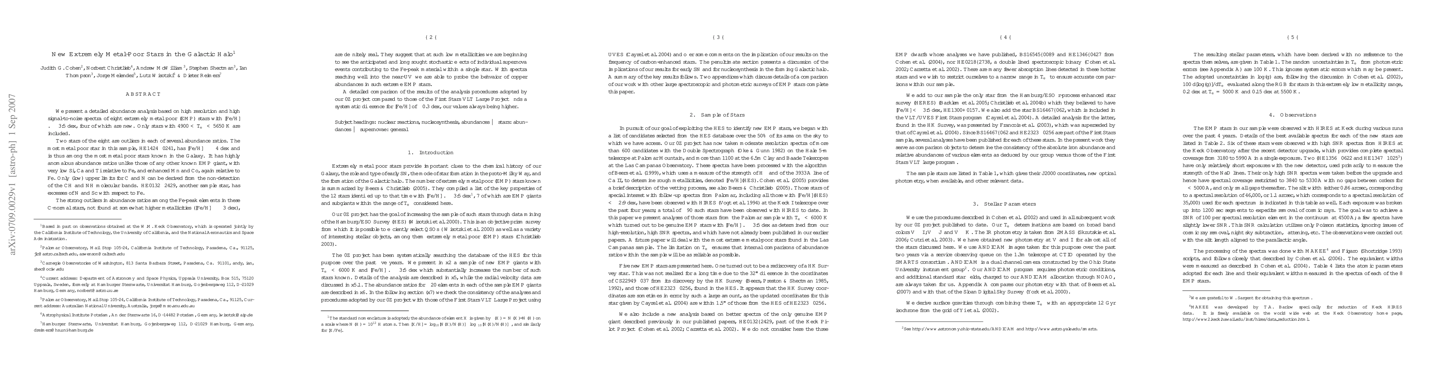 This study analyzes the elemental abundances of eight extremely metal-poor stars in the Milky Way's halo, four of which are newly identified. Notably, the star HE1424-0241, with an iron abundance of [Fe/H] ~ -4 dex, exhibits highly unusual elemental ratios, suggesting the influence of individual supernova events at such low metallicities.