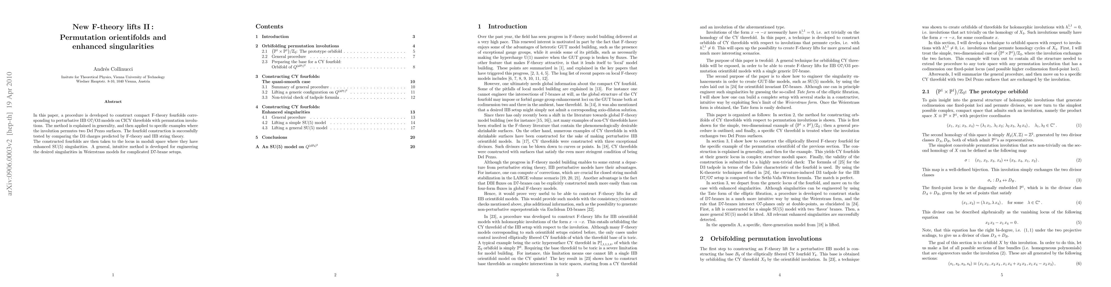The paper introduces a procedure for constructing F-theory lifts of IIB orientifold models using permutation involutions, along with a method for engineering singularities in Weierstrass models for D7-branes.