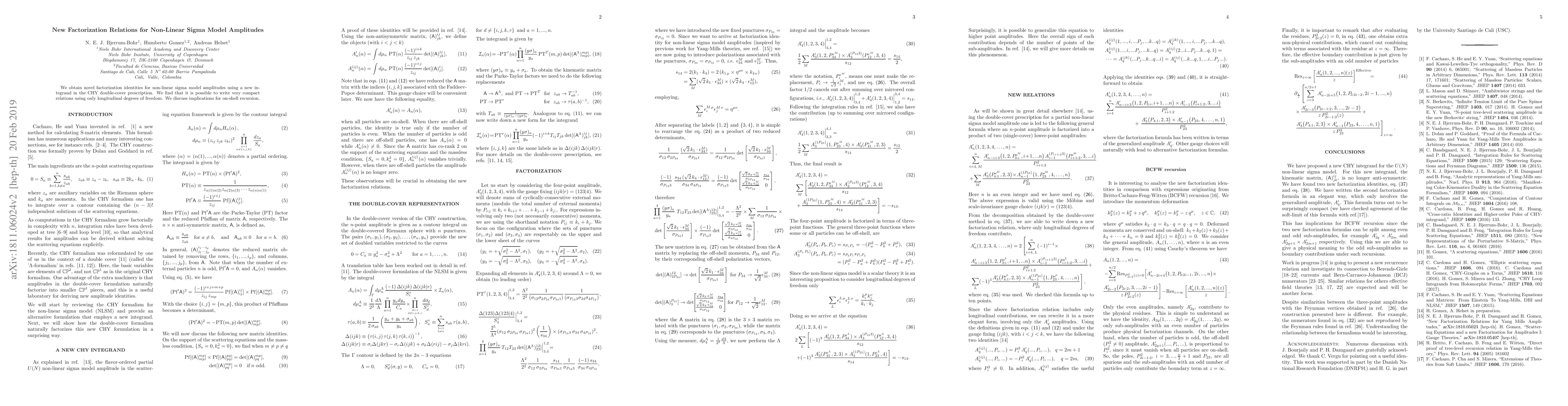 This paper introduces new factorization identities for non-linear sigma model amplitudes via a novel integrand in the CHY double-cover prescription, enabling compact relations using only longitudinal degrees of freedom, and discusses implications for on-shell recursion.
