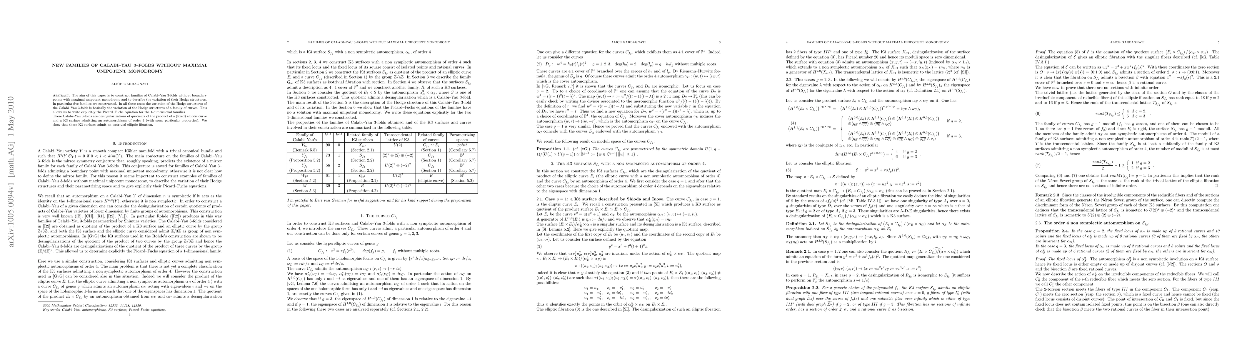 This paper constructs five families of Calabi-Yau 3-folds without maximal unipotent monodromy, focusing on their Hodge structures and desingularizations of specific quotients. The variation in Hodge structures is linked to families of curves, enabling explicit writing of the Picard-Fuchs equation.