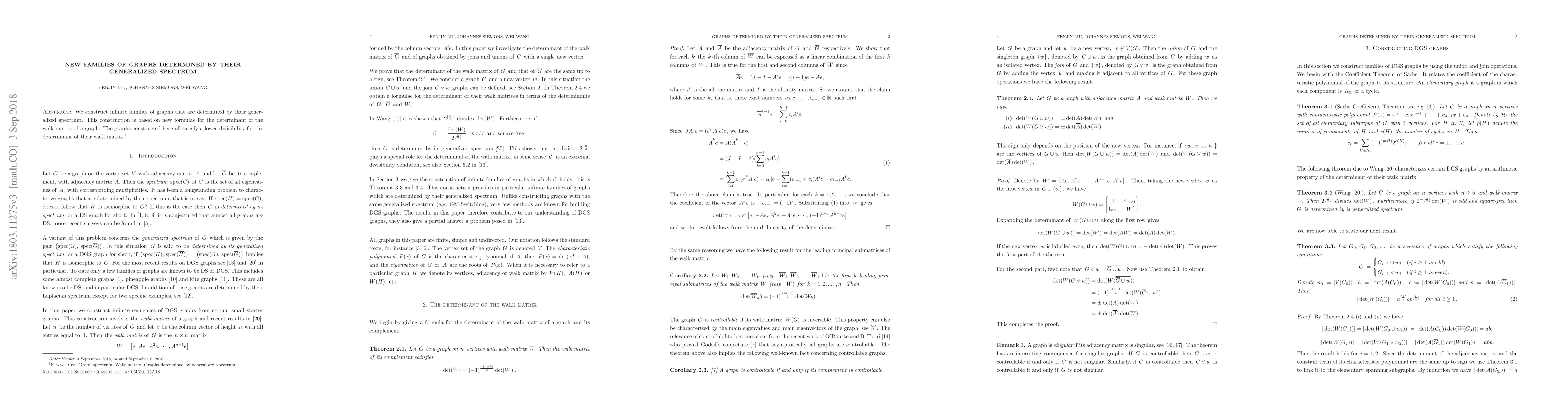 The research constructs infinite families of graphs determined by their generalized spectrum using new formulae for the determinant of the walk matrix, with a lower divisibility condition on the determinant of their walk matrix.