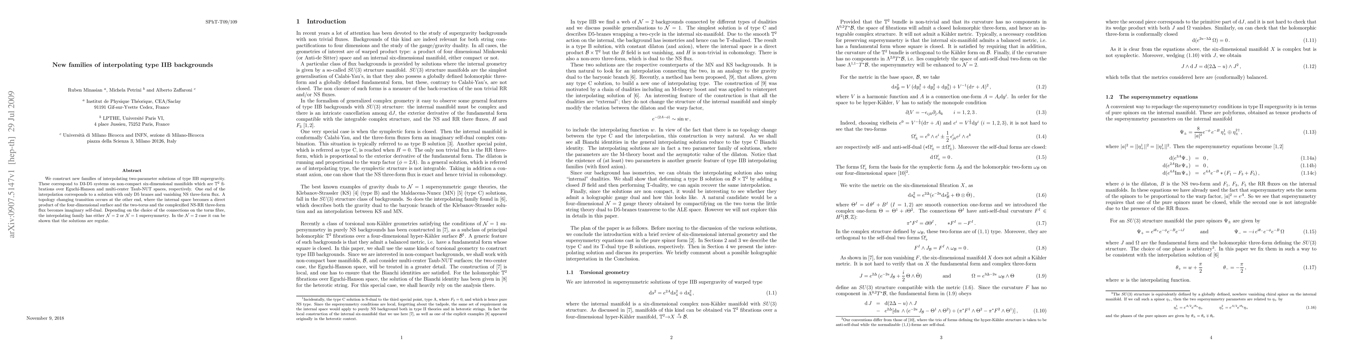 We construct new families of interpolating two-parameter solutions of type IIB supergravity. These correspond to D3-D5 systems on non-compact six-dimensional manifolds which are T^2 fibrations over Eguchi-Hanson and multi-center Taub-NUT spaces, respectively. One end of the interpolation corresponds to a solution with only D5 branes and vanishing NS three-form flux. A topology changing transition occurs at the other end, where the internal space becomes a direct product of the four-dimensional surface and the two-torus and the complexified NS-RR three-form flux becomes imaginary self-dual. Depending on the choice of the connections on the torus fibre, the interpolating family has either N=2 or N=1 supersymmetry. In the N=2 case it can be shown that the solutions are regular.