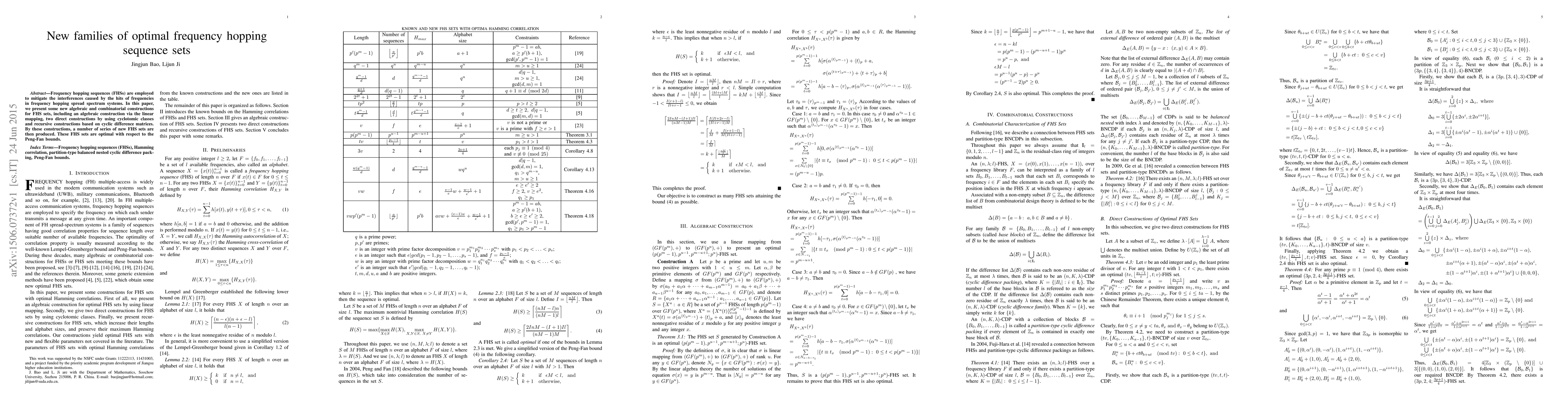 Researchers developed new families of optimal frequency hopping sequence sets using algebraic and combinatorial constructions, producing a number of series with improved performance.