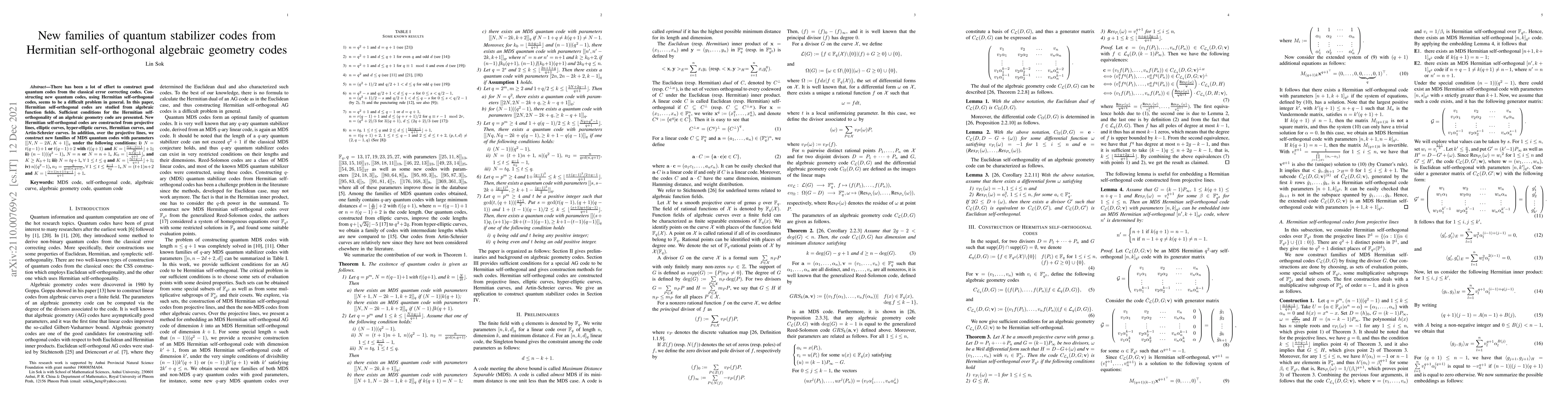 This paper constructs new families of quantum stabilizer codes from Hermitian self-orthogonal algebraic geometry codes, providing sufficient conditions for their construction and establishing parameters for MDS quantum codes with specific properties.