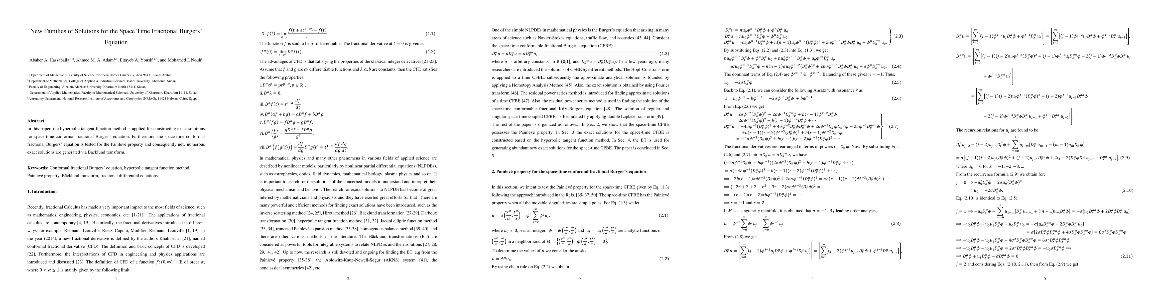 In this paper, the hyperbolic tangent function method is applied for constructing exact solutions for space-time conformal fractional Burgers equation. Furthermore, the space-time conformal fractional Burgers equation is tested for the Painleve property and consequently new numerous exact solutions are generated via Backlund transform.