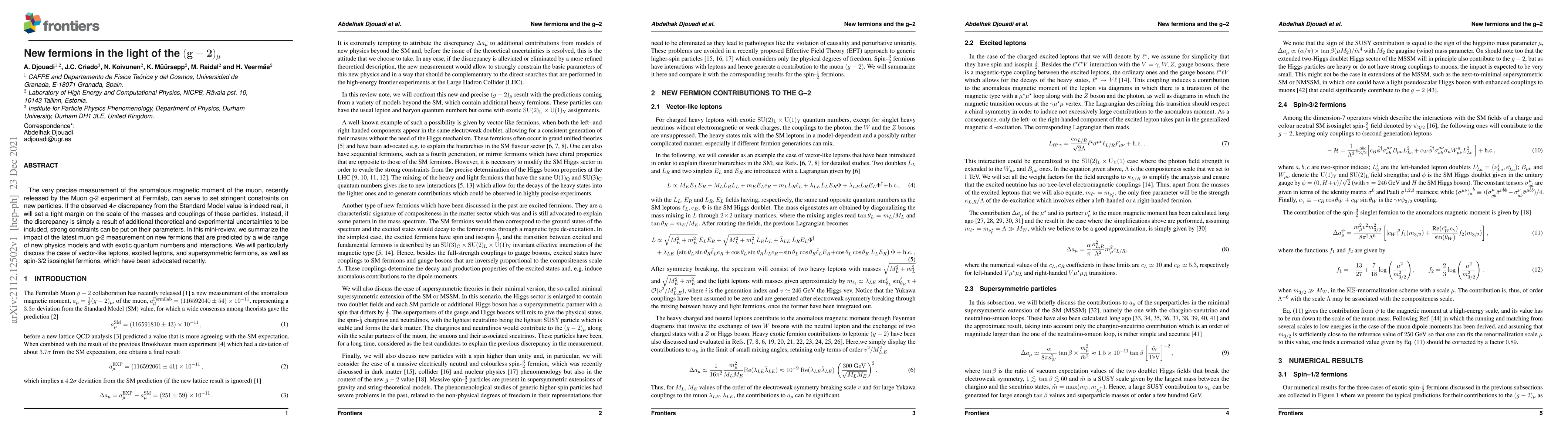 The very precise measurement of the anomalous magnetic moment of the muon, recently released by the Muon g-2 experiment at Fermilab, can serve to set stringent constraints on new particles. If the observed 4$\sigma$ discrepancy from the Standard Model value is indeed real, it will set a tight margin on the scale of the masses and couplings of these particles. Instead, if the discrepancy is simply a result of additional theoretical and experimental uncertainties to be included, strong constraints can be put on their parameters. In this mini-review, we summarize the impact of the latest muon g-2 measurement on new fermions that are predicted by a wide range of new physics models and with exotic quantum numbers and interactions. We will particularly discuss the case of vector-like leptons, excited leptons, and supersymmetric fermions, as well as spin-3/2 isosinglet fermions, which have been advocated recently.