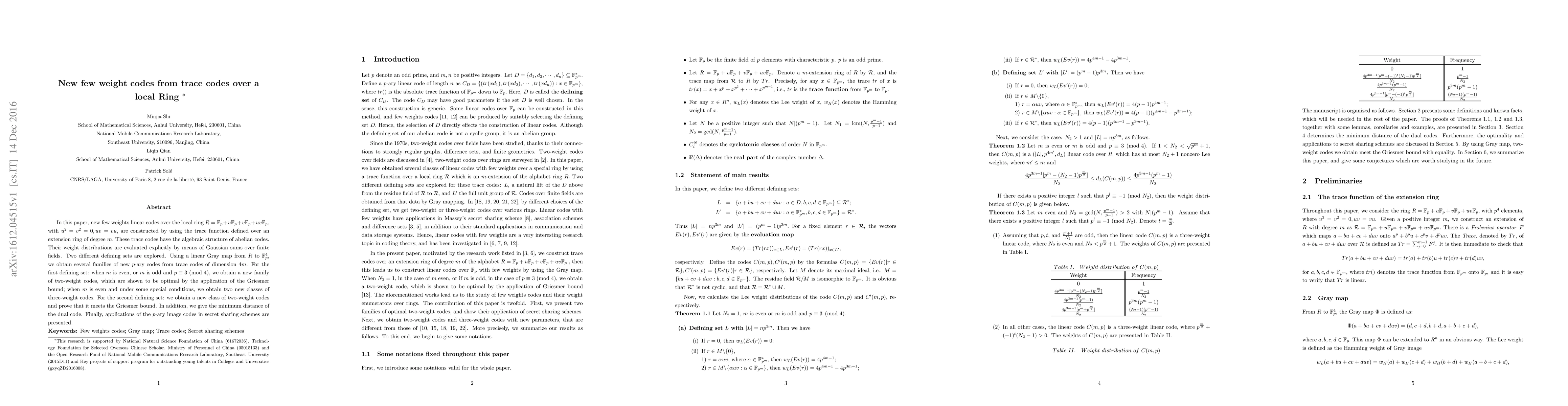 This paper constructs new few weight linear codes over a local ring using trace functions and explores their weight distributions via Gaussian sums. It derives several families of optimal $p$-ary codes, including two-weight and three-weight codes, and discusses their applications in secret sharing schemes.