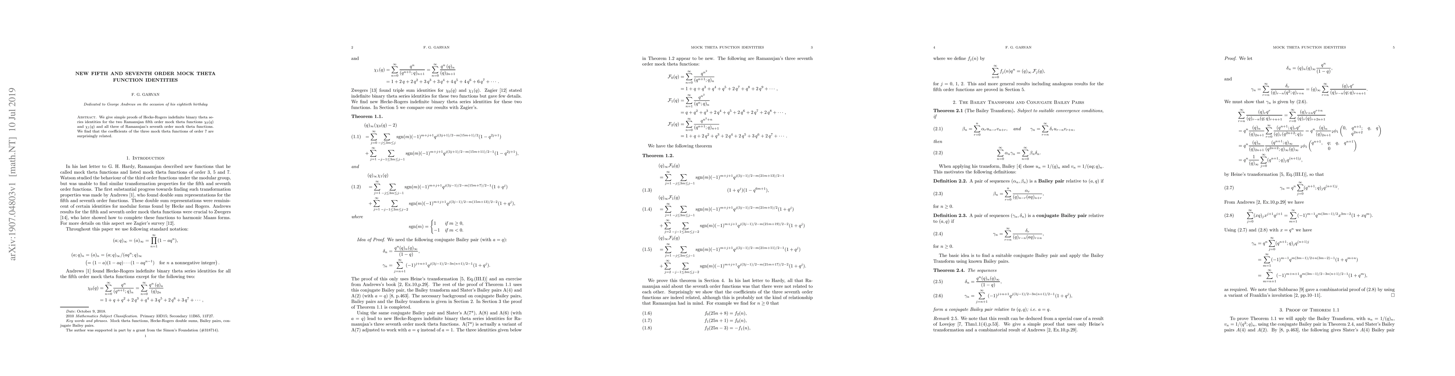 Summary: The paper presents proofs for Hecke-Rogers identities related to Ramanujan's fifth and seventh order mock theta functions, revealing surprising relationships among the coefficients of the seventh order functions.