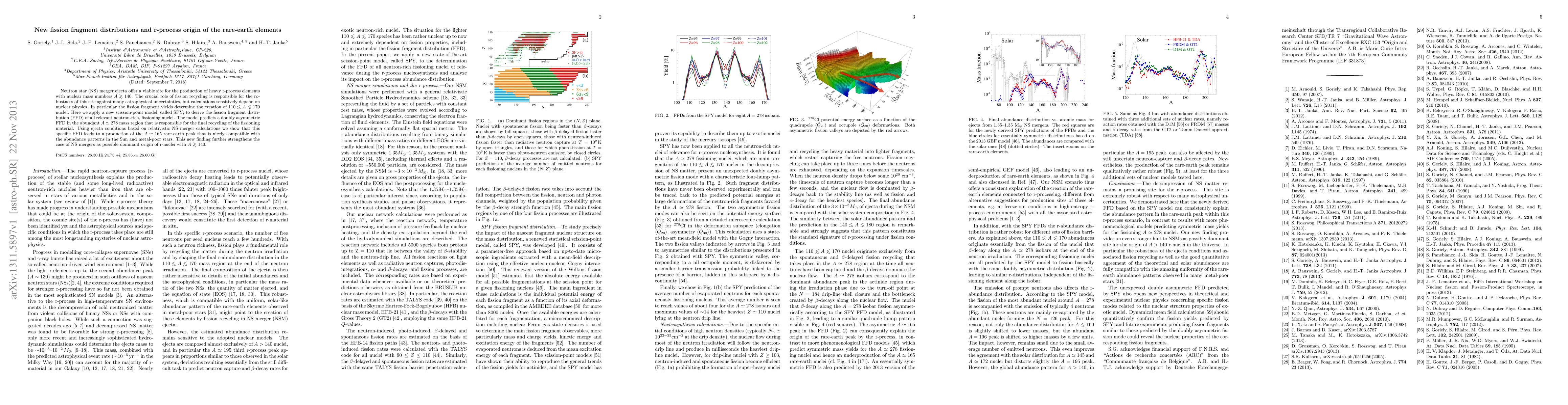 This paper introduces a new scission-point model, SPY, to derive fission fragment distributions crucial for the production of heavy r-process elements in neutron star mergers. The model's predictions of a doubly asymmetric fission fragment distribution in the A ~ 278 mass region support the production of the A ~ 165 rare-earth peak, aligning with solar and metal-poor star abundance patterns, thus reinforcing neutron star mergers as the primary source for r-process elements heavier than A = 140.
