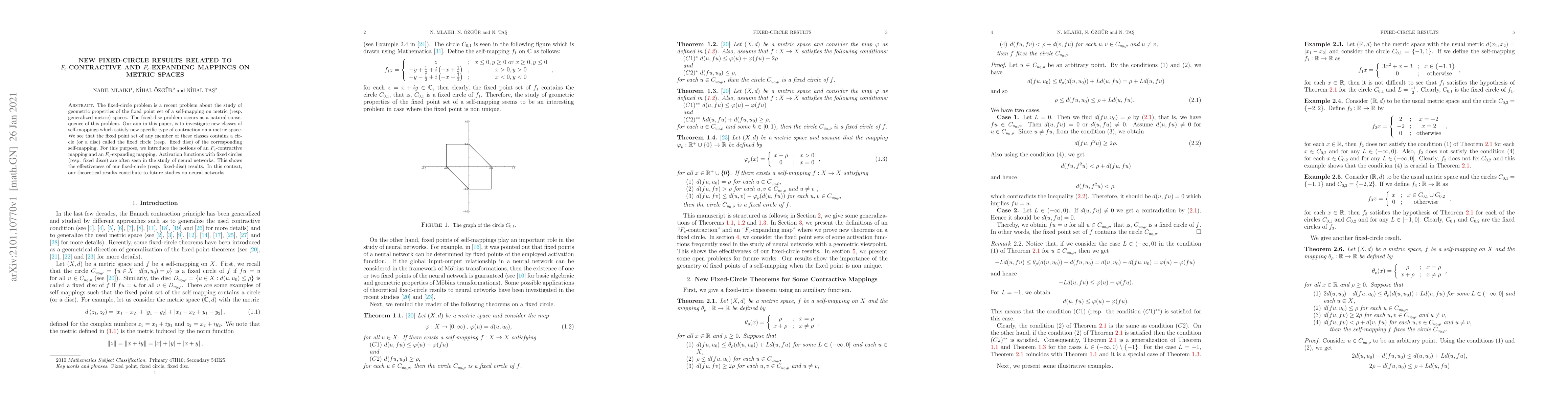 The fixed-circle problem is a recent problem about the study of geometric properties of the fixed point set of a self-mapping on metric (resp. generalized metric) spaces. The fixed-disc problem occurs as a natural consequence of this problem. Our aim in this paper, is to investigate new classes of self-mappings which satisfy new specific type of contraction on a metric space. We see that the fixed point set of any member of these classes contains a circle (or a disc) called the fixed circle (resp. fixed disc) of the corresponding self-mapping. For this purpose, we introduce the notions of an $F_{c}$-contractive mapping and an $F_{c}$-expanding mapping. Activation functions with fixed circles (resp. fixed discs) are often seen in the study of neural networks. This shows the effectiveness of our fixed-circle (resp. fixed-disc) results. In this context, our theoretical results contribute to future studies on neural networks.