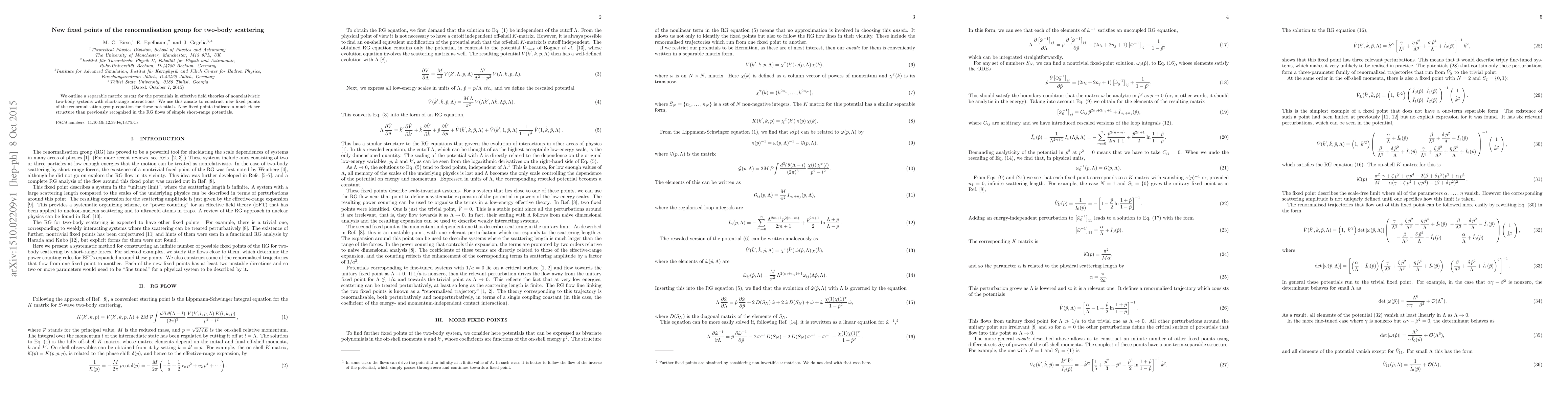 We outline a separable matrix ansatz for the potentials in effective field theories of nonrelativistic two-body systems with short-range interactions. We use this ansatz to construct new fixed points of the renormalisation-group equation for these potentials. New fixed points indicate a much richer structure than previously recognized in the RG flows of simple short-range potentials.