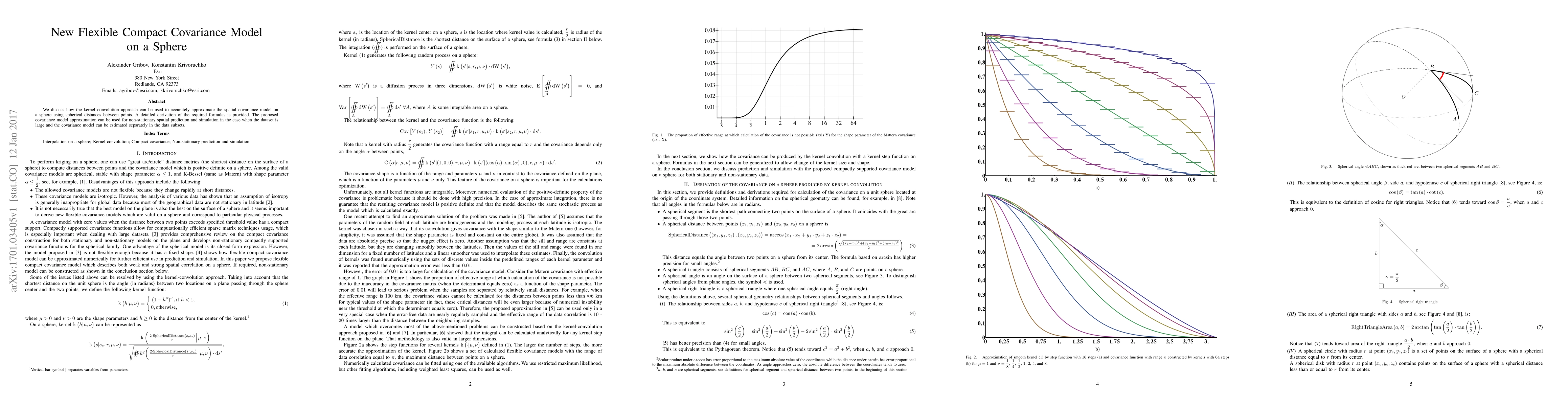 This paper introduces a flexible, compact covariance model on a sphere using kernel convolution with spherical distances. It details the formula derivation for non-stationary spatial prediction and simulation, especially useful for large datasets with estimable subset covariance models.