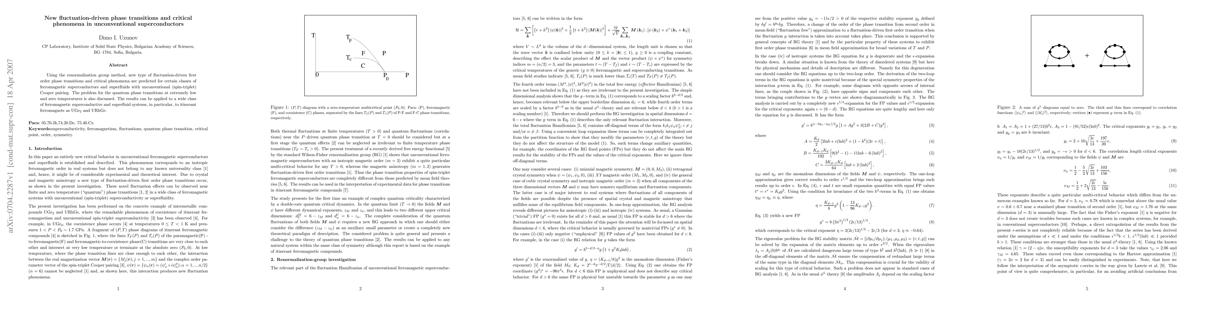 The study predicts new fluctuation-driven first-order phase transitions and critical phenomena in unconventional superconductors with spin-triplet Cooper pairing using renormalization group methods. These findings are relevant for quantum phase transitions in ferromagnetic superconductors and superfluids, including materials like UGe2 and URhGe.