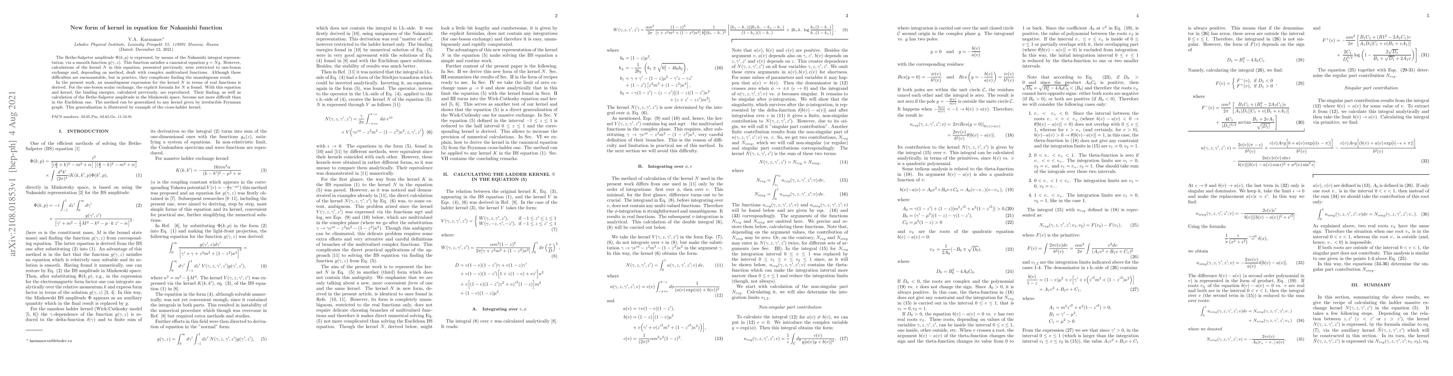 Researchers have developed a new form of kernel in the Nakanishi function equation that simplifies calculations, making it easier to calculate binding energies and other properties in nuclear physics.