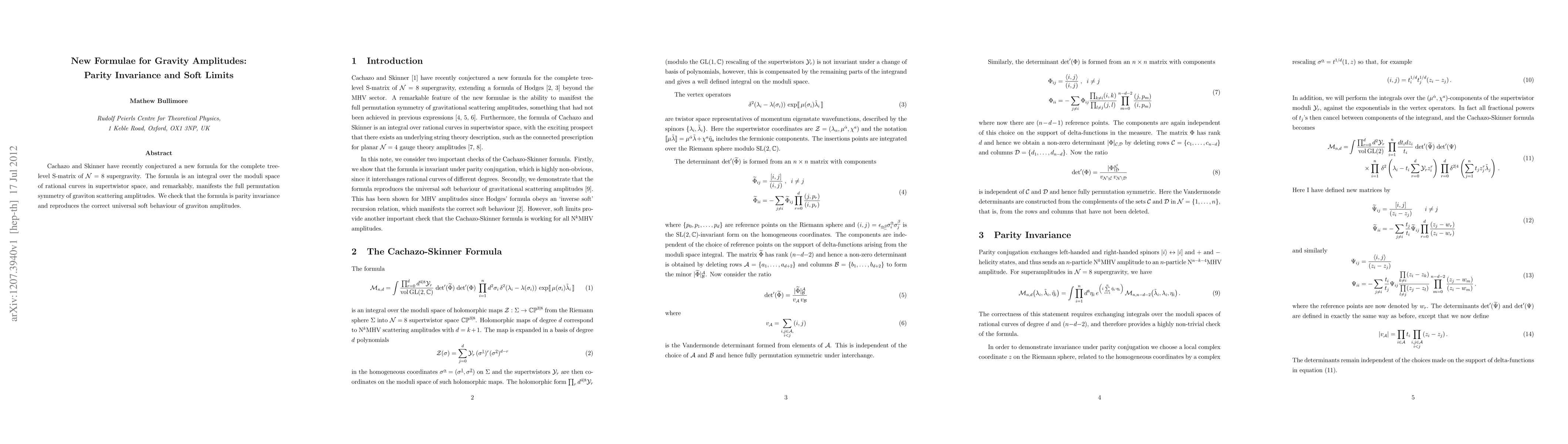Cachazo and Skinner have recently conjectured a new formula for the complete tree-level S-matrix of N = 8 supergravity. The formula is an integral over the moduli space of rational curves in supertwistor space, and remarkably, manifests the full permutation symmetry of graviton scattering amplitudes. We check that the formula is parity invariance and reproduces the correct universal soft behaviour of graviton amplitudes.