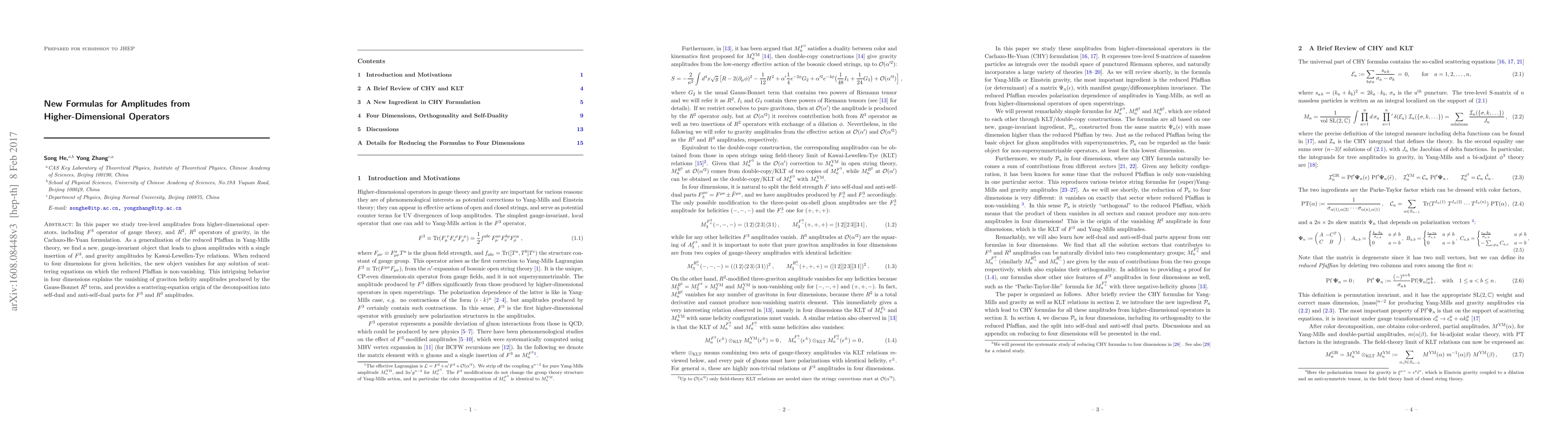 In this paper we study tree-level amplitudes from higher-dimensional operators, including $F^3$ operator of gauge theory, and $R^2$, $R^3$ operators of gravity, in the Cachazo-He-Yuan formulation. As a generalization of the reduced Pfaffian in Yang-Mills theory, we find a new, gauge-invariant object that leads to gluon amplitudes with a single insertion of $F^3$, and gravity amplitudes by Kawai-Lewellen-Tye relations. When reduced to four dimensions for given helicities, the new object vanishes for any solution of scattering equations on which the reduced Pfaffian is non-vanishing. This intriguing behavior in four dimensions explains the vanishing of graviton helicity amplitudes produced by the Gauss-Bonnet $R^2$ term, and provides a scattering-equation origin of the decomposition into self-dual and anti-self-dual parts for $F^3$ and $R^3$ amplitudes.