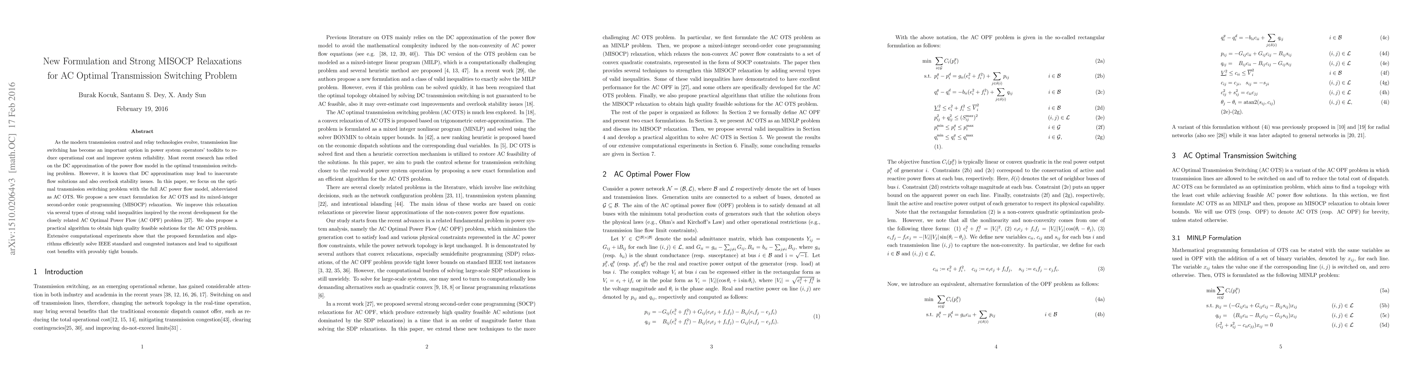 This paper presents a new exact formulation and strong MISOCP relaxations for the AC Optimal Transmission Switching (AC OTS) problem, addressing the limitations of DC approximations. The proposed algorithms and relaxations achieve significant cost benefits and tight bounds for IEEE standard and congested instances.