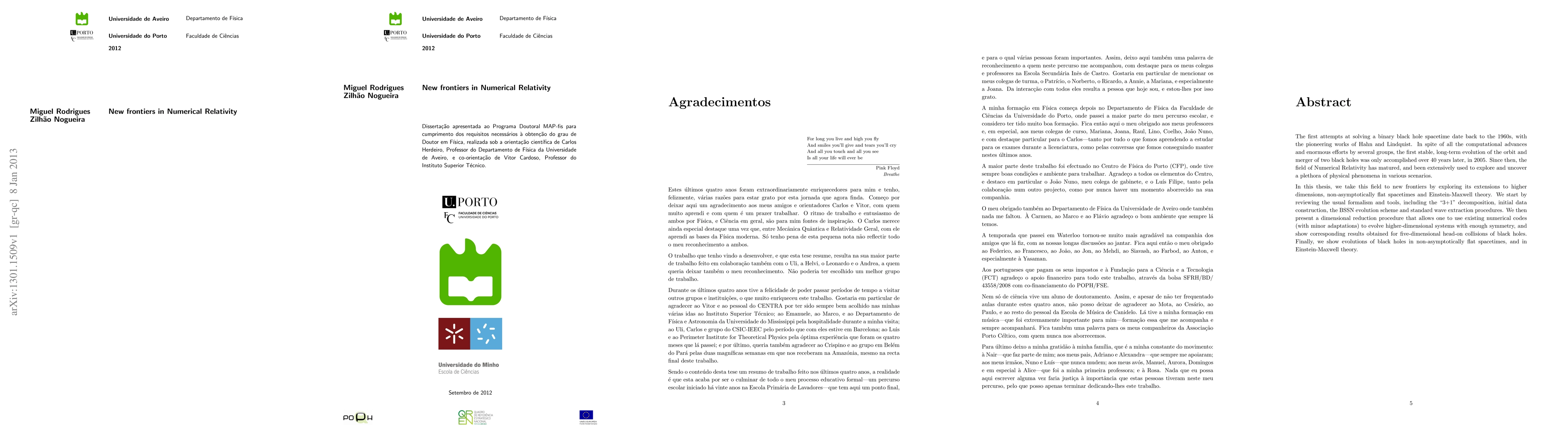 This thesis explores new frontiers in Numerical Relativity, advancing its applications to higher dimensions, non-asymptotically flat spacetimes, and Einstein-Maxwell theory, with key findings including simulations of five-dimensional black hole collisions and evolutions in complex spacetime geometries.