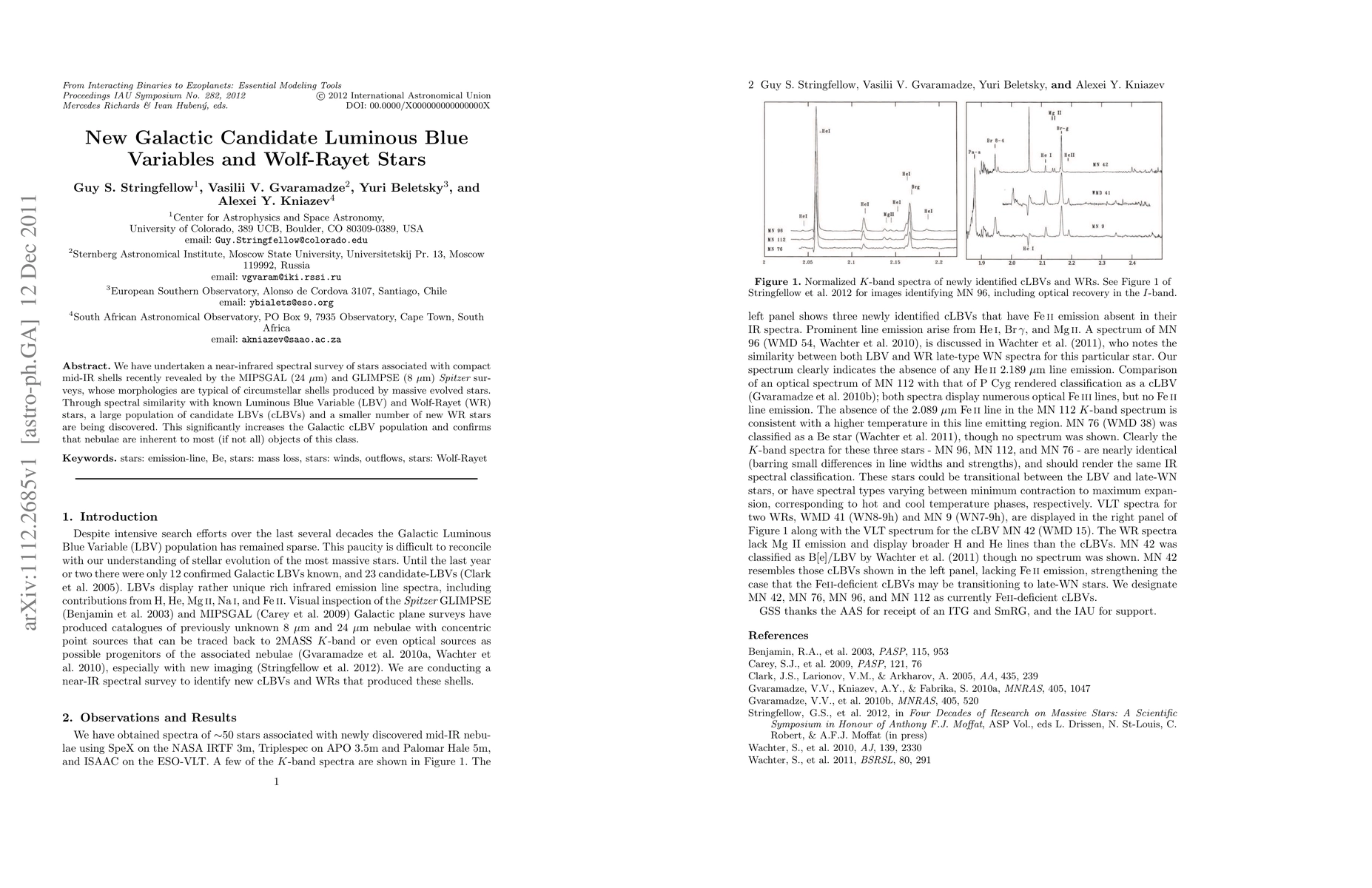 This paper reports on a near-infrared spectral survey identifying new Galactic Luminous Blue Variable (LBV) candidates and Wolf-Rayet (WR) stars associated with compact mid-IR shells from Spitzer surveys. The findings significantly augment the known population of LBVs and confirm that nebulae are common to these massive evolved stars.